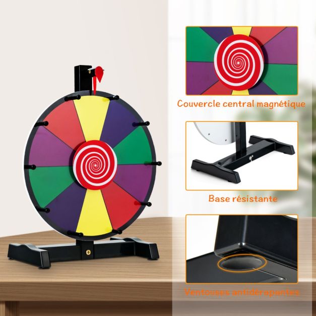 Roue de la fortune dia.30 cm - 10 emplacements prize wheel avec marqueur effaceur base antidérapante 20_0009175