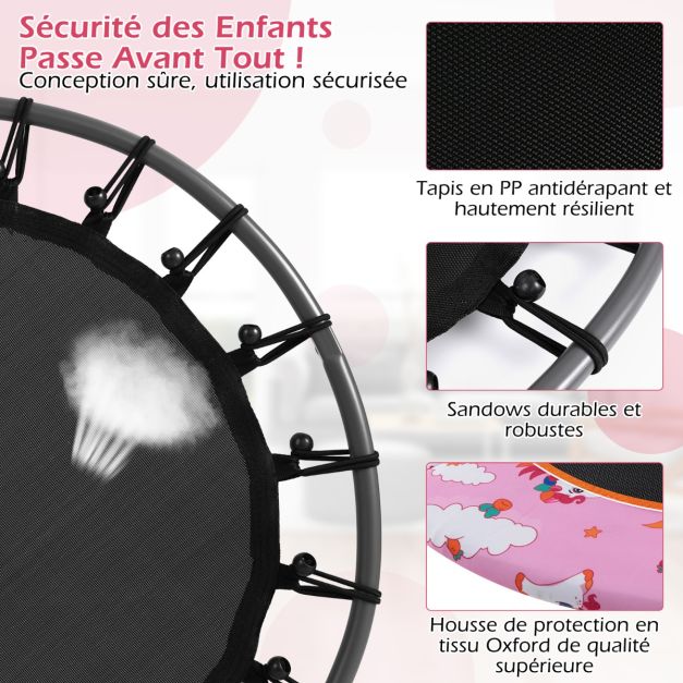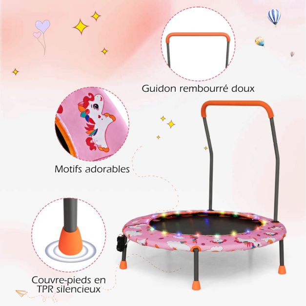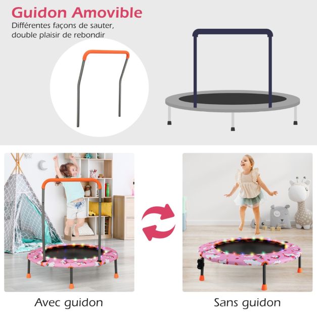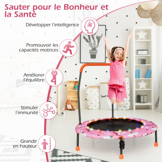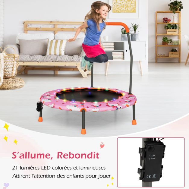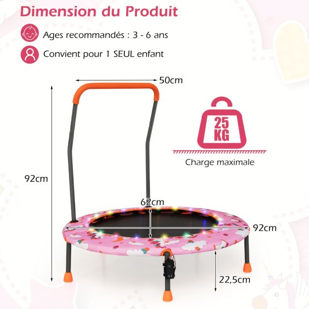 Trampoline pour enfants diamètre 92 cm lumineux avec poignée amovible charge 25kg pour sports de saut intérieur extérieur rose 20_0009619