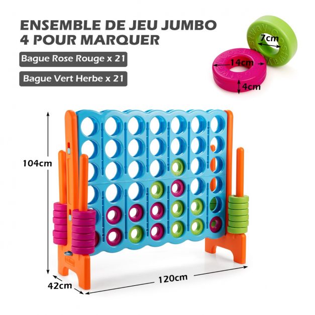 Puissance 4 géant pour enfants et adultes avec 42 jetons circulaires idéal pour intérieur et extérieur bleu + orange 20_0009151