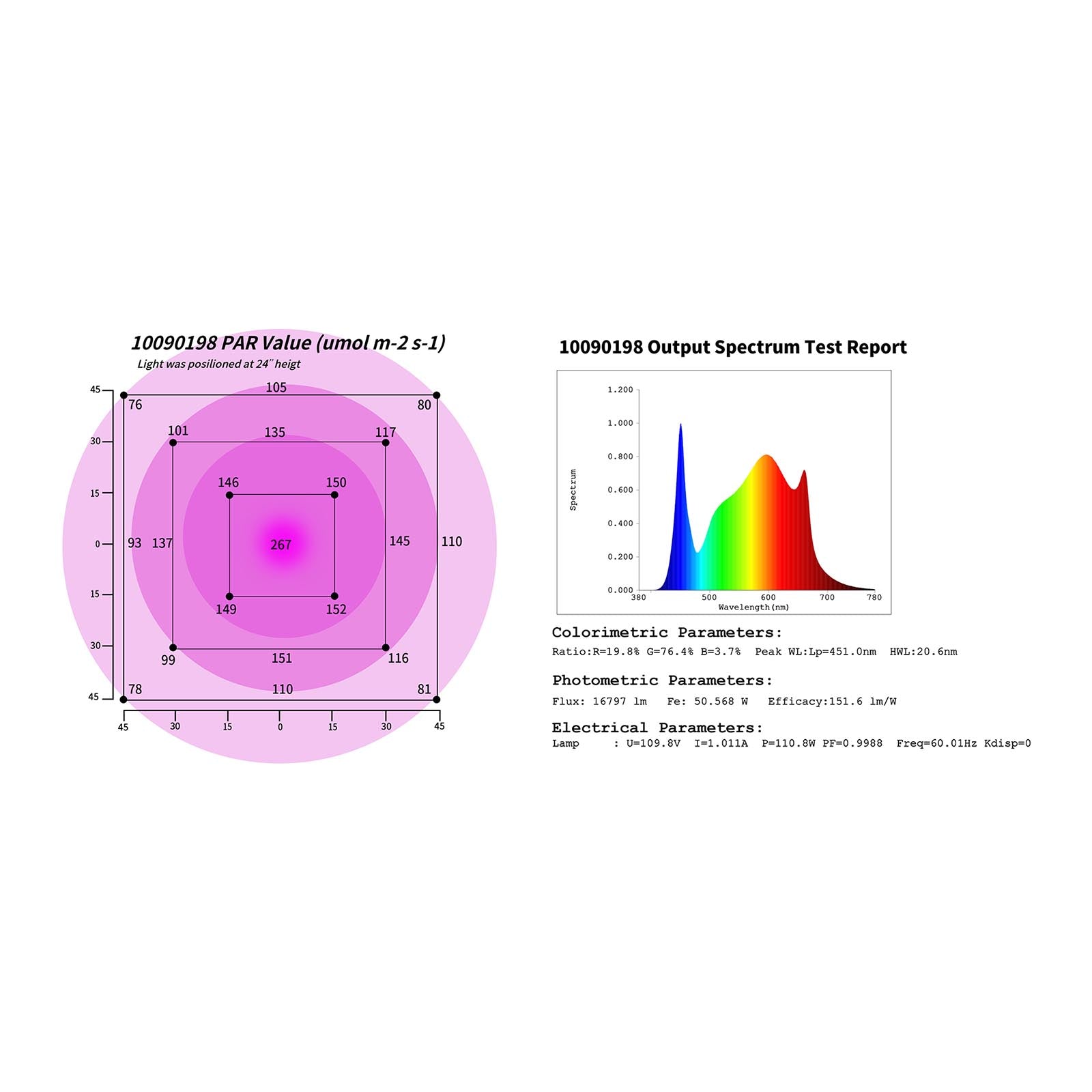 Polyvalence – PPFD de 889 µmol/m2/s idéal pour les plantes vertes, les plantes à fleurs, les fines herbes, les fruits et les légumes comme les tomates, les poivrons, la laitue et bien plus encore