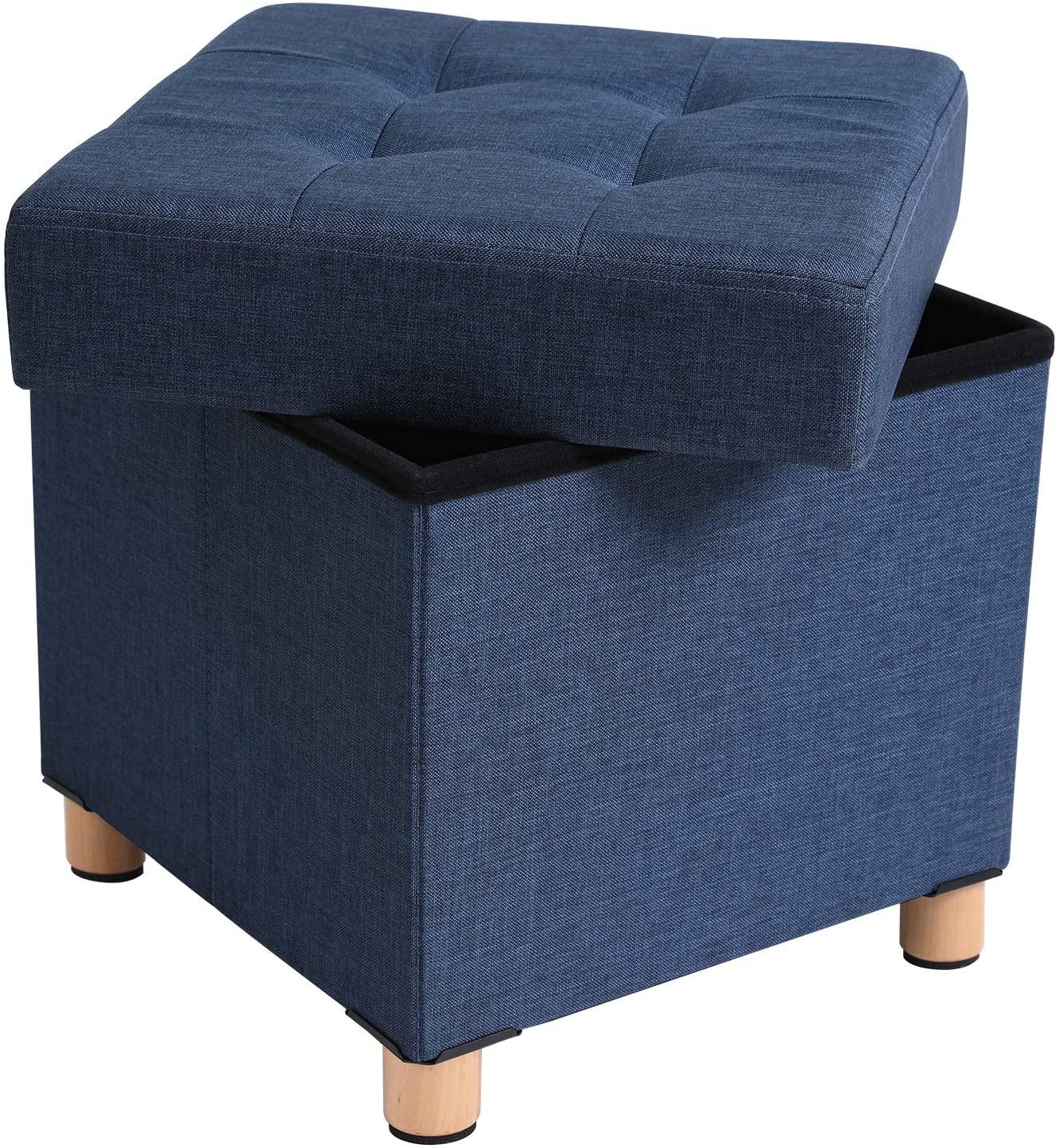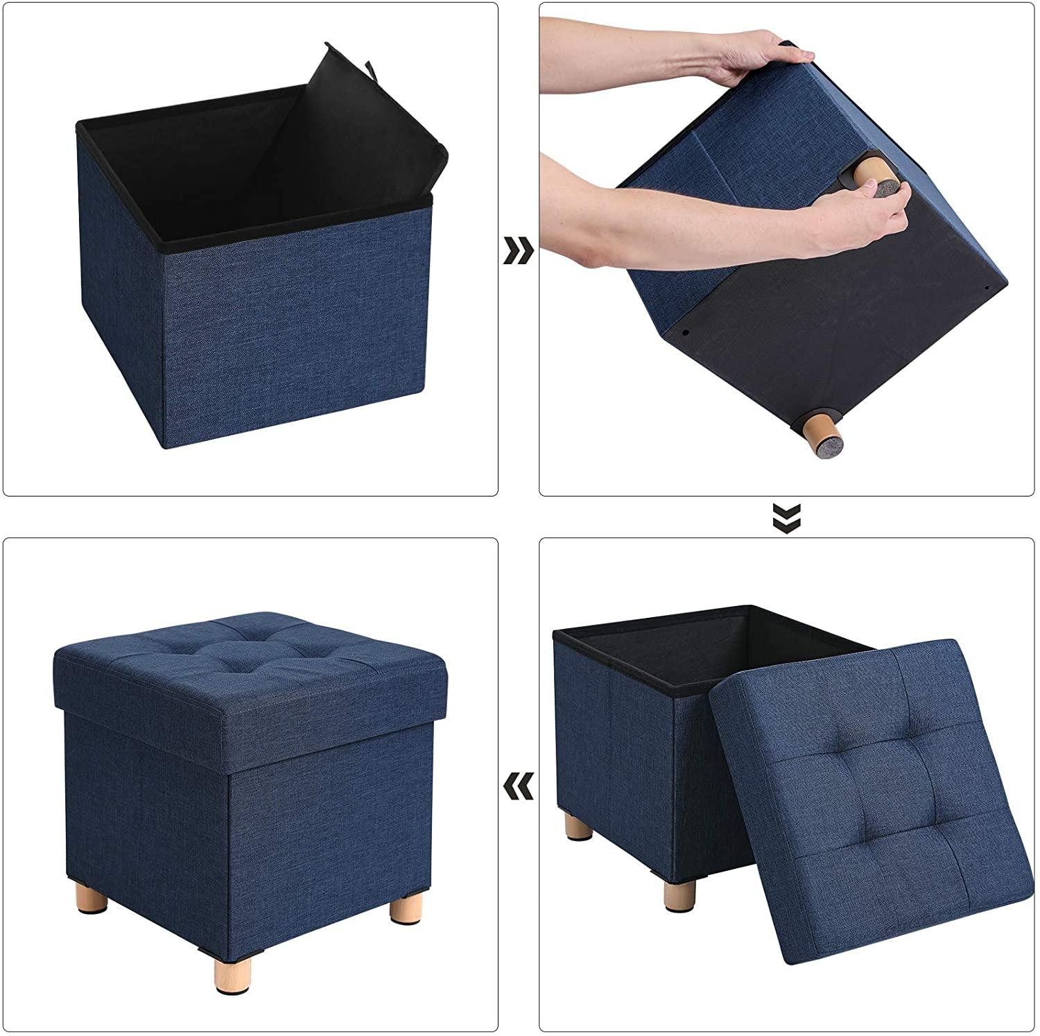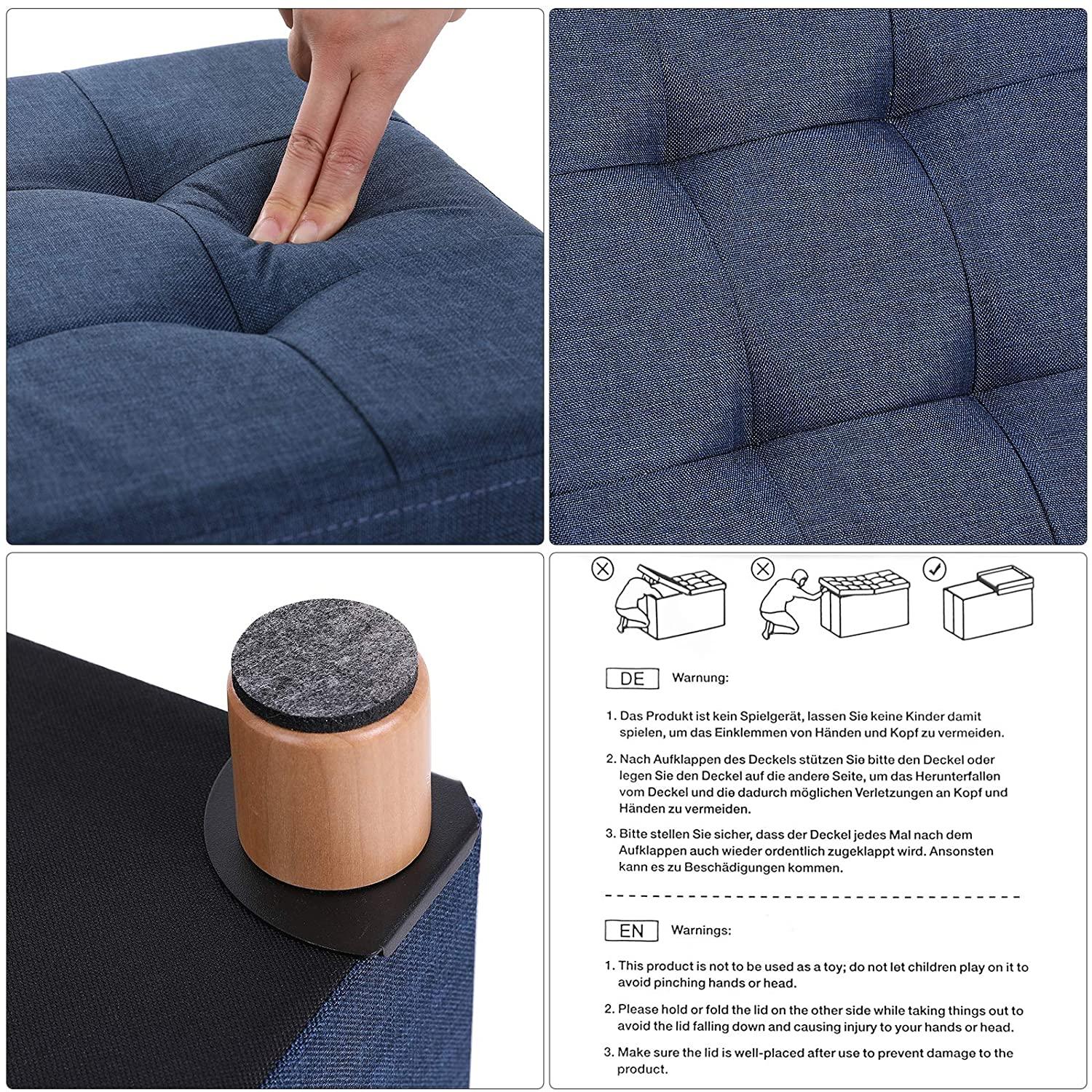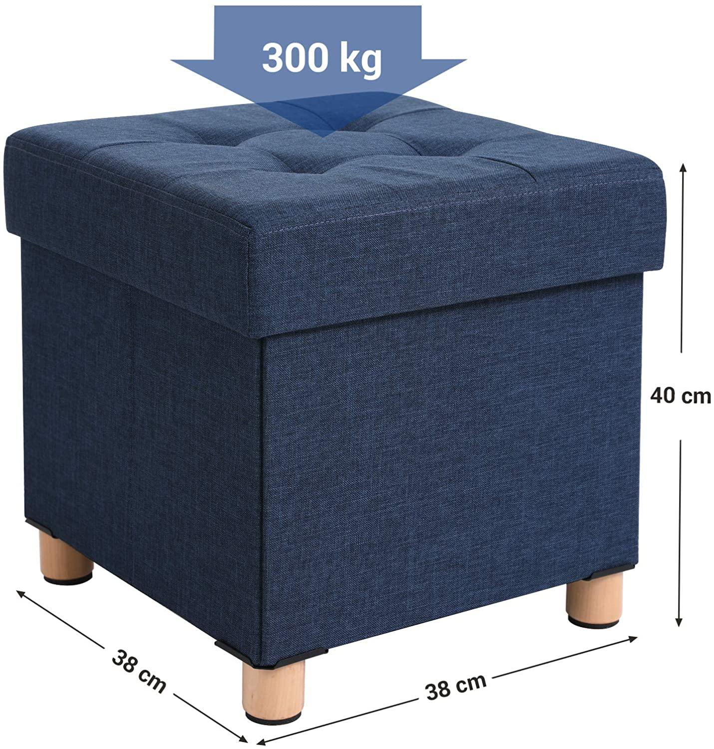 Banc de rangement tabouret rembourré pliable avec couvercle pieds en bois massif 38 x 38 x 40 cm gain de place capacité de charge 300 kg pour chambre couloir bleu marine 12_0000422