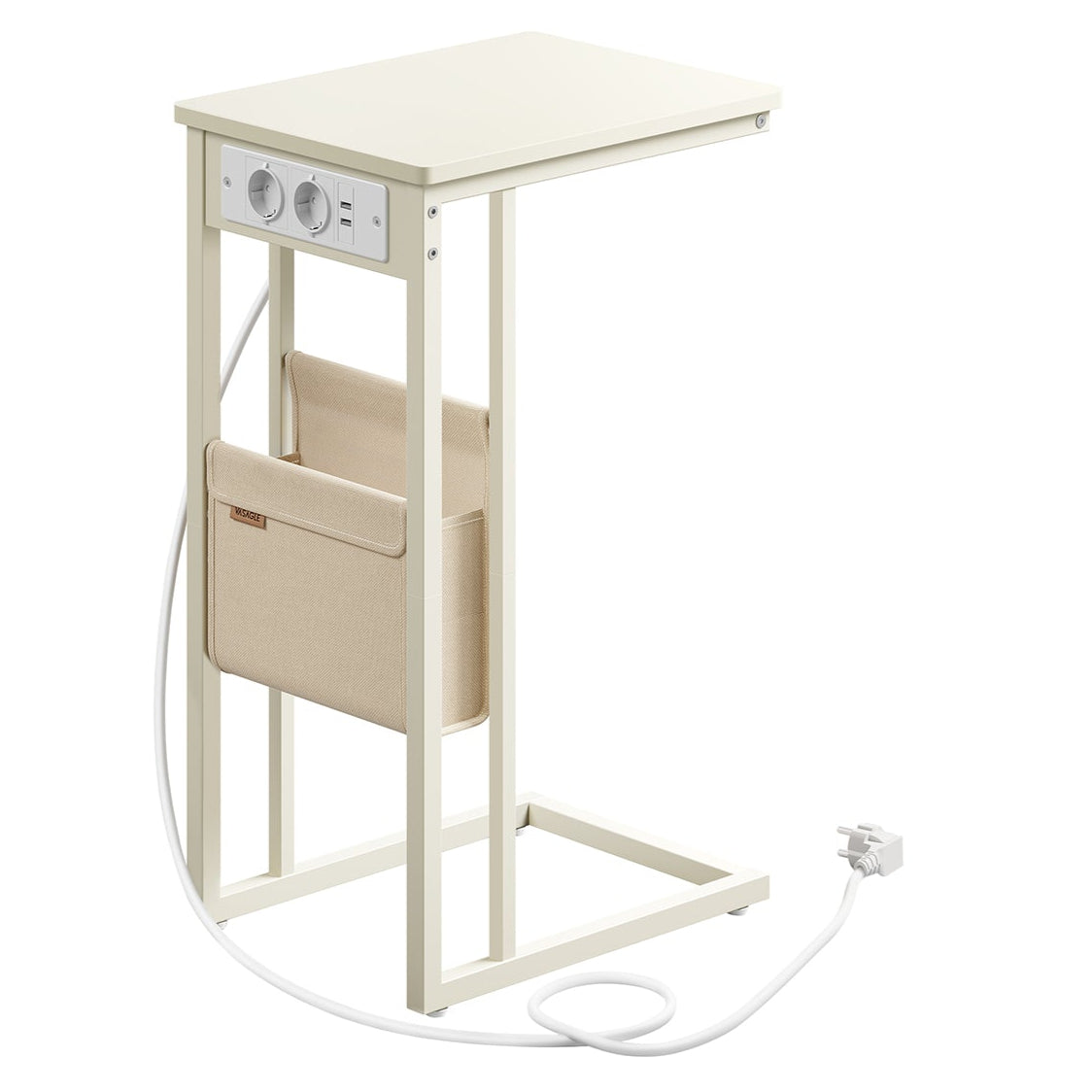 Table d’appoint table de chevet 30 x 40 x 62 cm avec multiprise bout de canapé en forme de c pour petits espaces 2 ports usb et prises sac pieds réglables pour chambre salon blanc 12_0007573