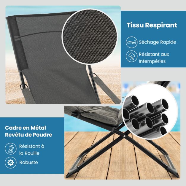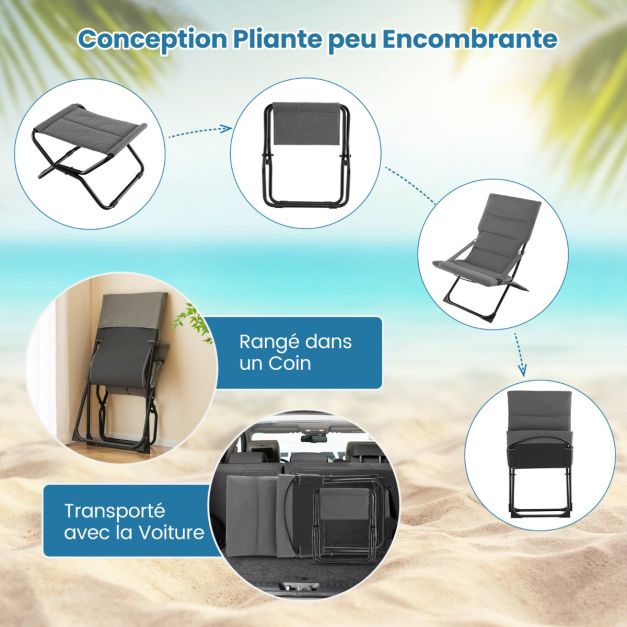 Chaise de patio pliante avec repose-pied chaise longue portable avec repose-pied coussin amovible chaise de plage inclinable gris 20_0008119