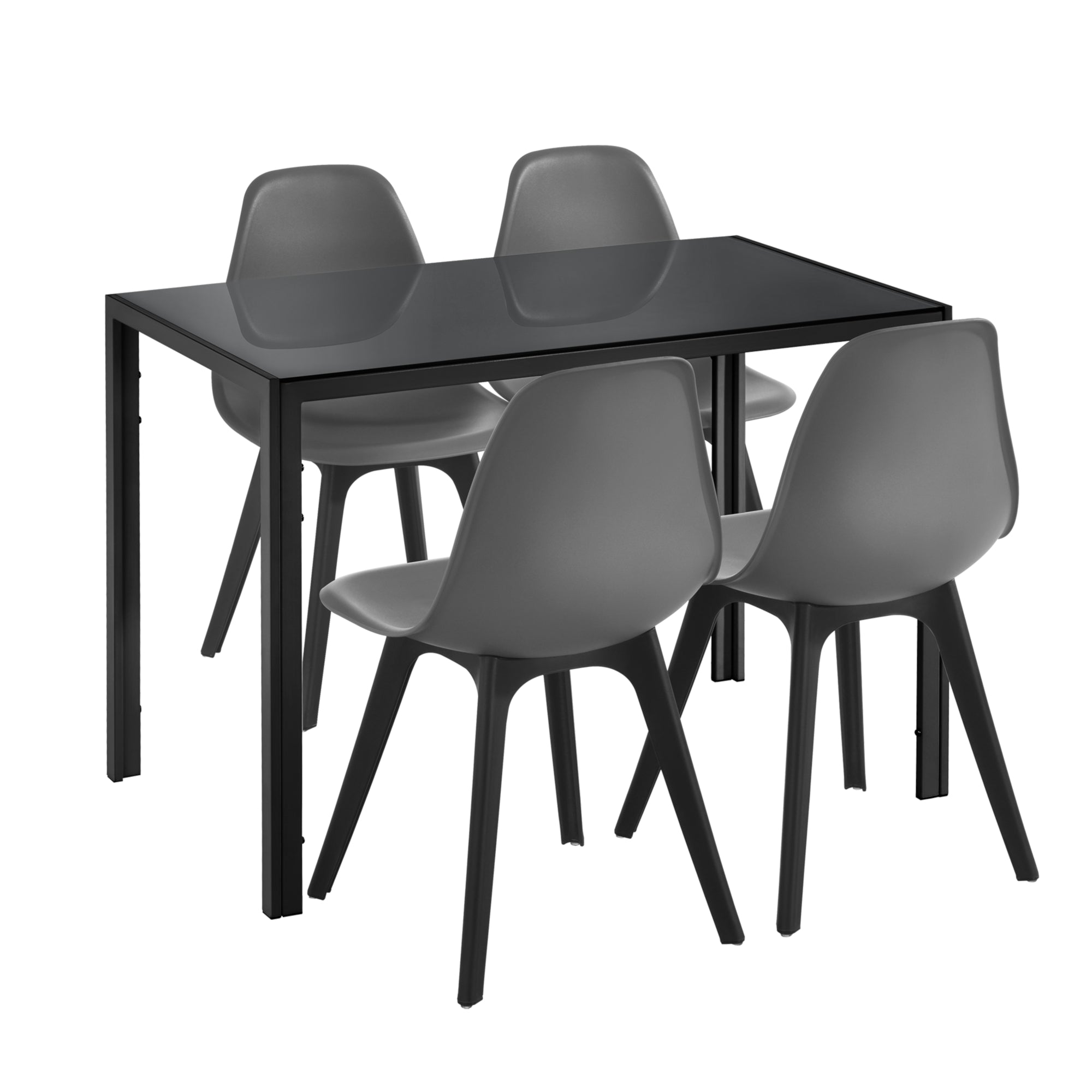 Ensemble de table et 4 chaisesTable de salle à manger avec 4 chaises métal bois plastique verre noir et gris 105cm x 60cm x 75cm 03_0006941