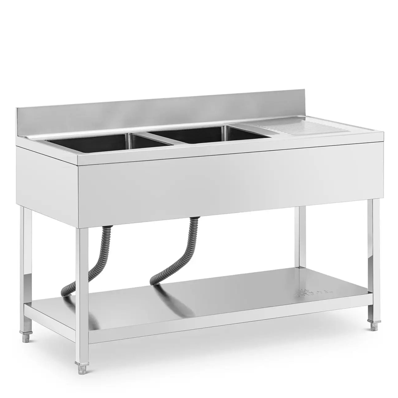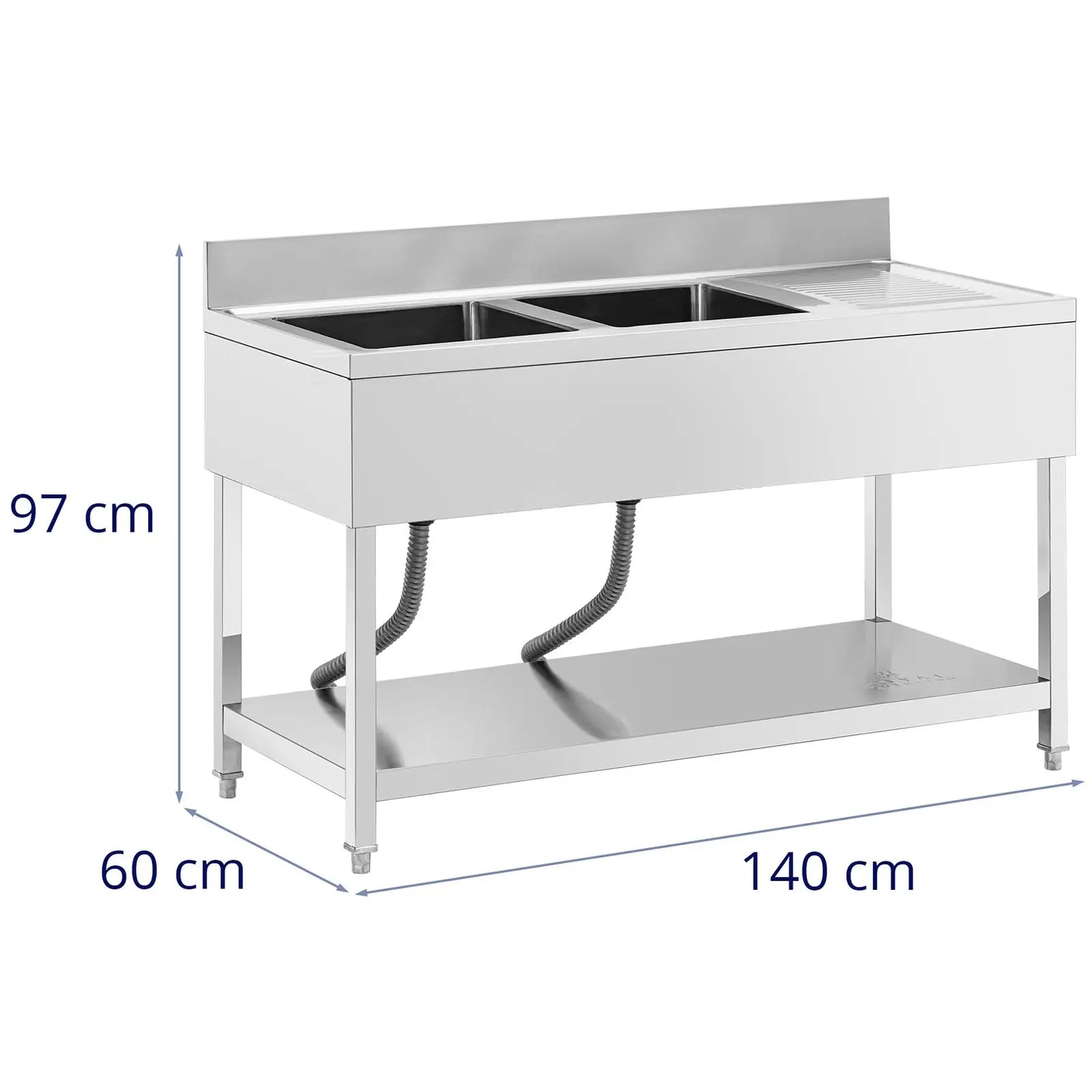 Plonge inox professionnel 2 éviers 140 x 60 x 97 cm acier inoxydable argenté 14_0009563
