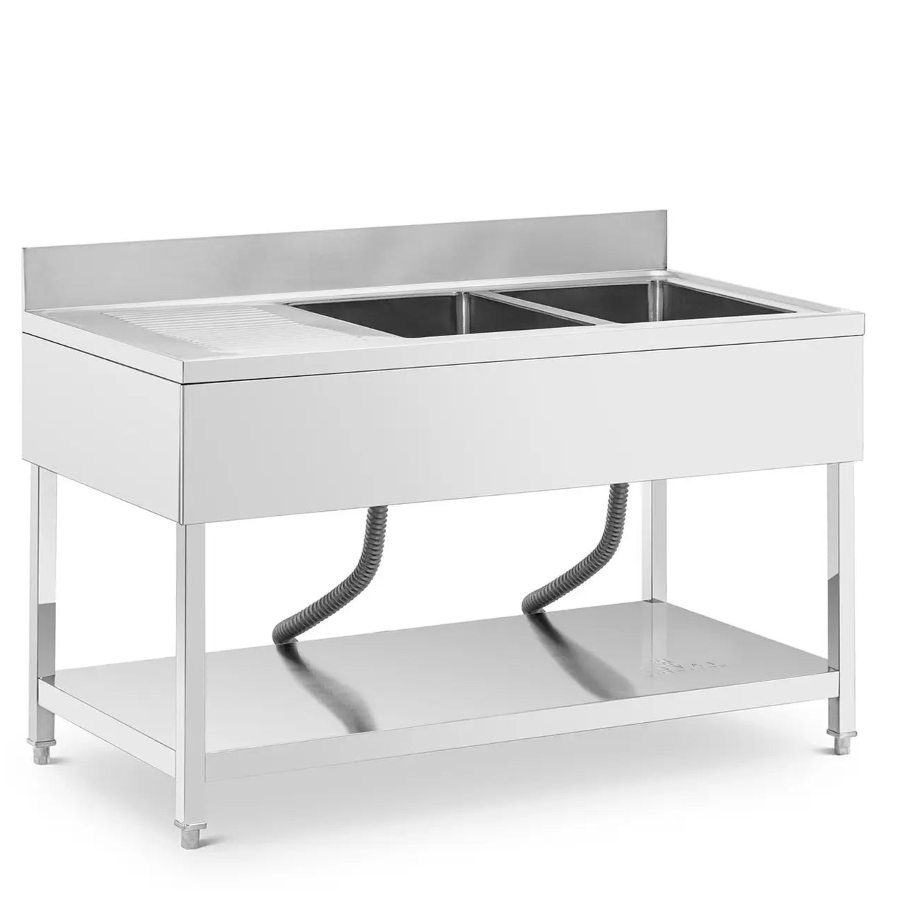 Plonge inox professionnel 2 éviers 140 x 70 x 97 cm acier inoxydable argenté 14_0009564