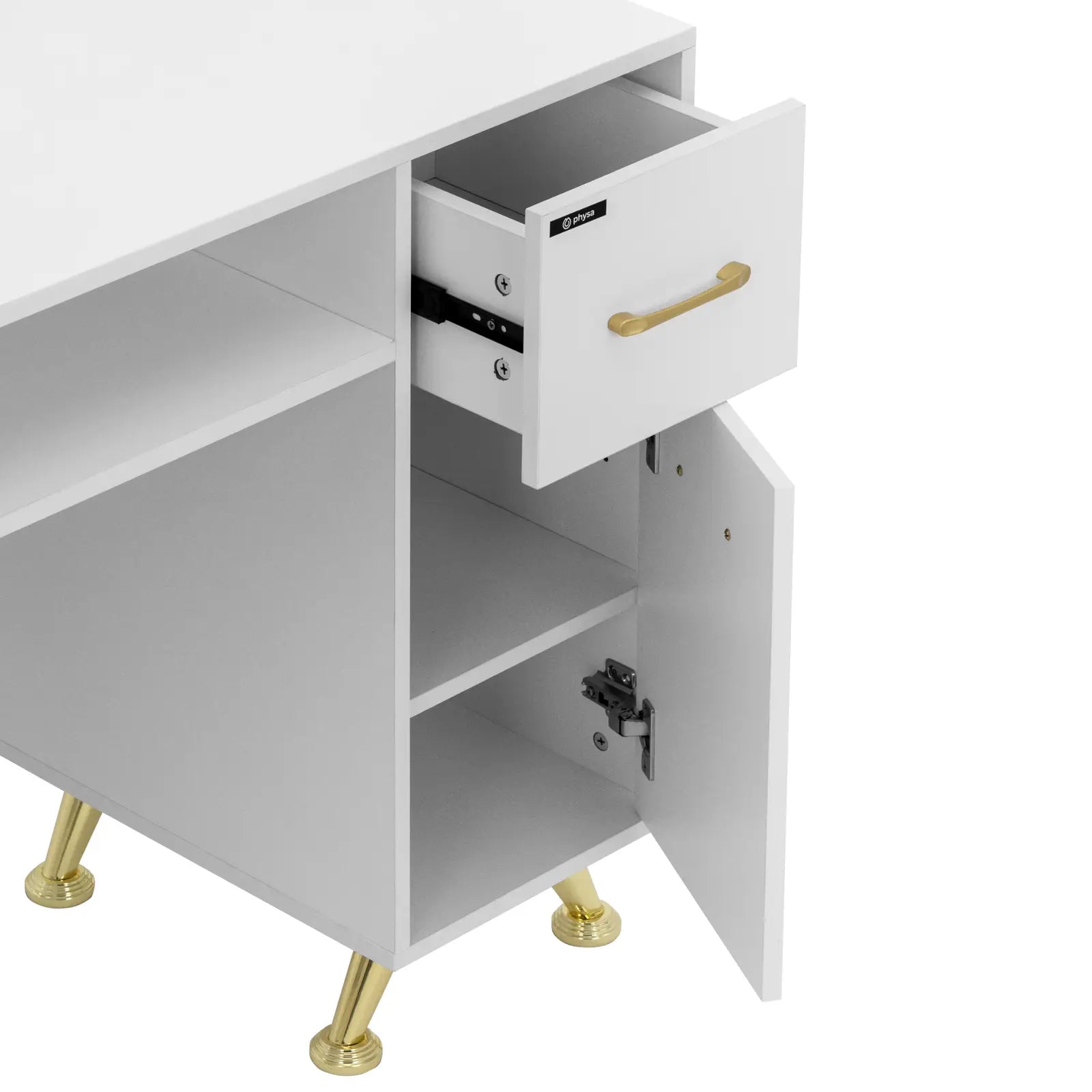 Élégance – cette table manucure se distingue par son design stylé et discret en blanc avec des accents dorés