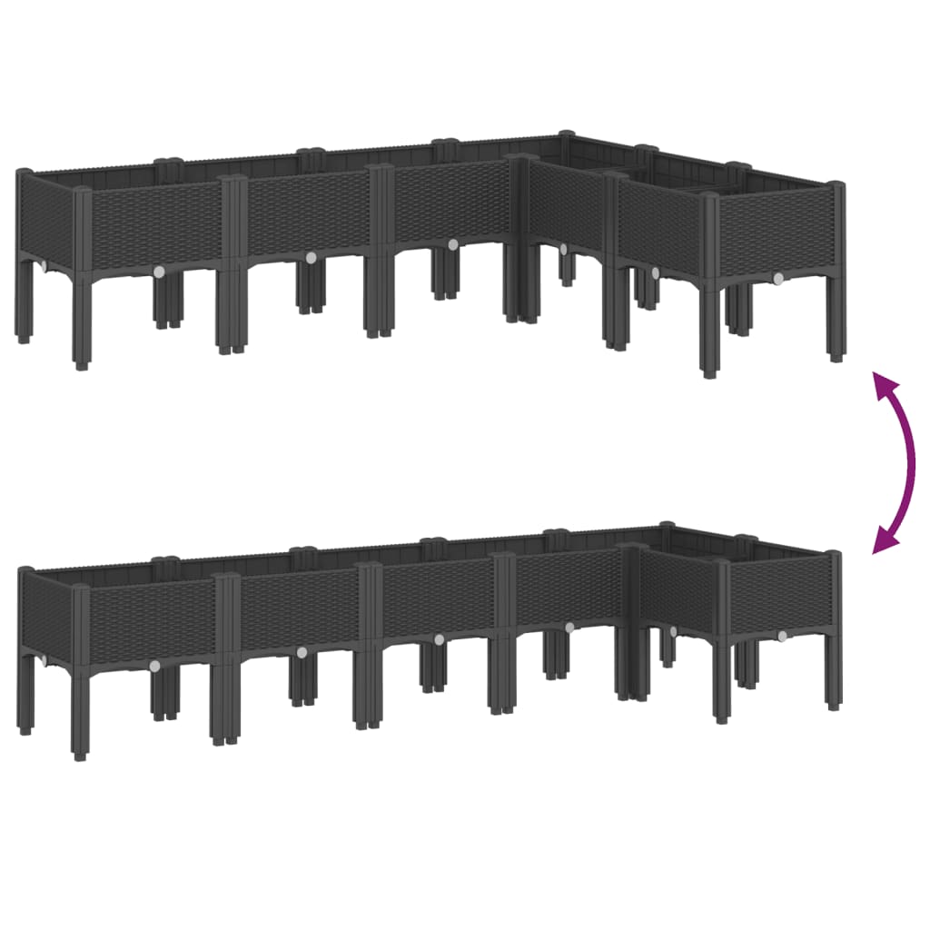 Jardinière bac lit surélevé plantes fleurs terrasse jardin avec pieds 160 x 120 x 42 cm PP noir 02_0038156