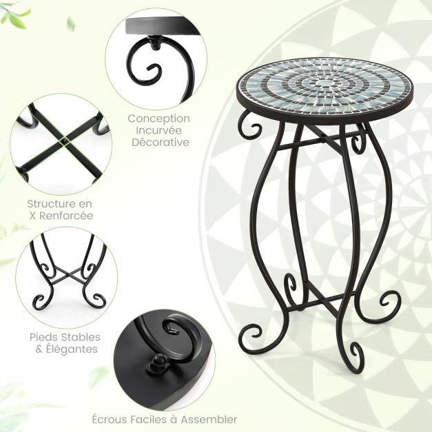 Table d'appoint ronde de jardin avec plateau mosaïque en carreaux de céramique table basse d'extérieur pour balcon piscine noir 20_0009369