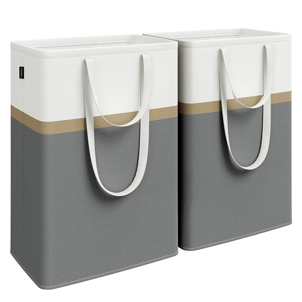 Lot de 2 paniers à linge corbeilles à linge pliable sacs à linge de 75 litres avec poignées courtes et longues faciles à transporter et à nettoyer autoportants gris 12_0006240