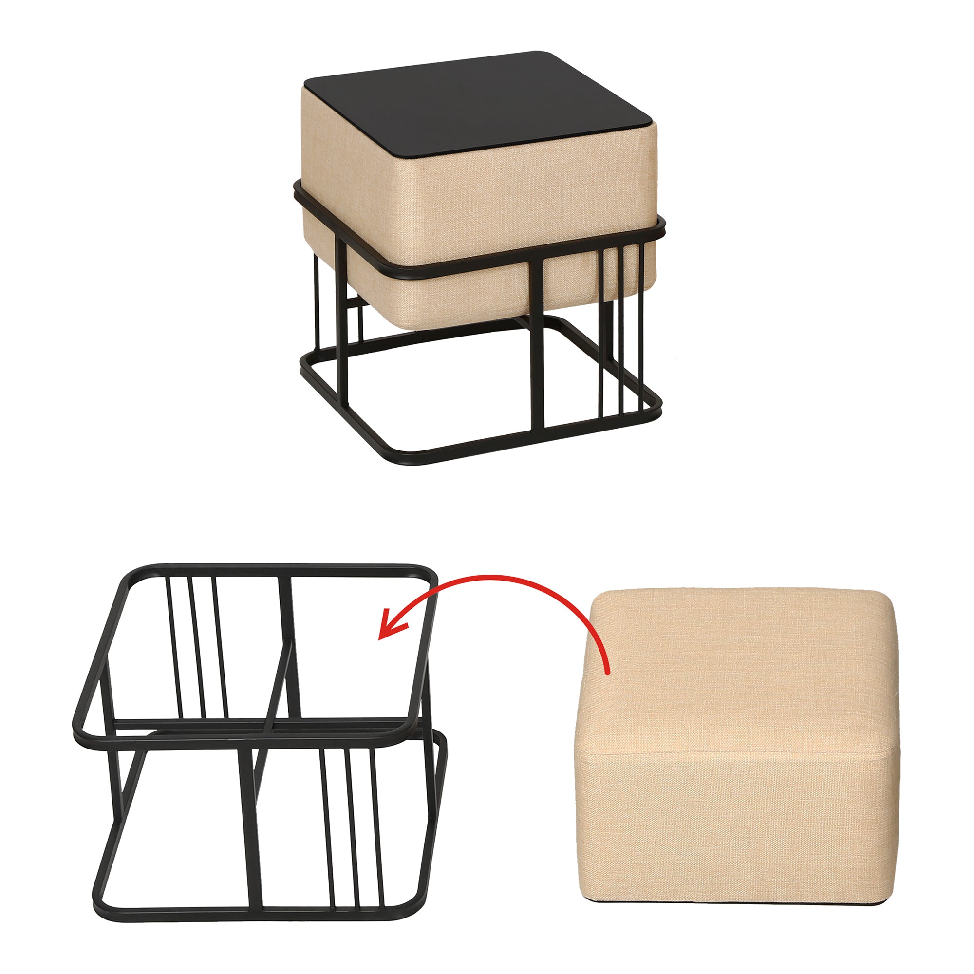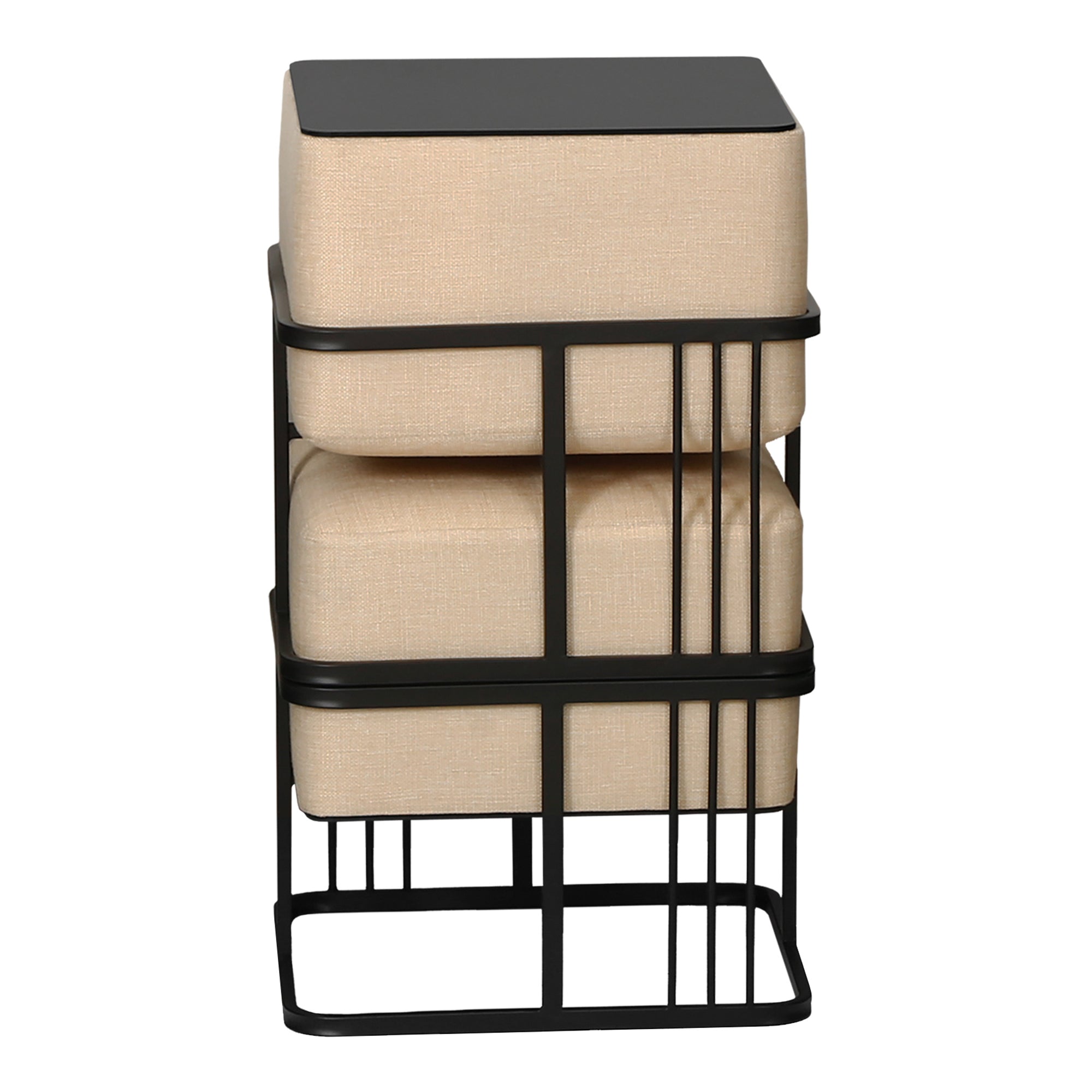 Lot de 2 poufs empilables moderne design intemporel multifonctionnel carré beige 03_0009689