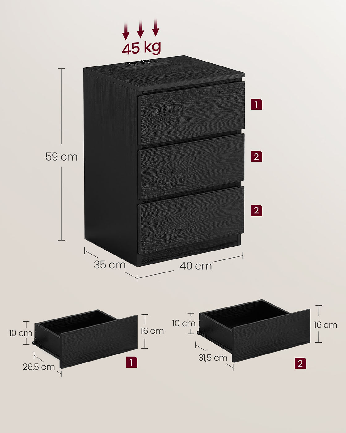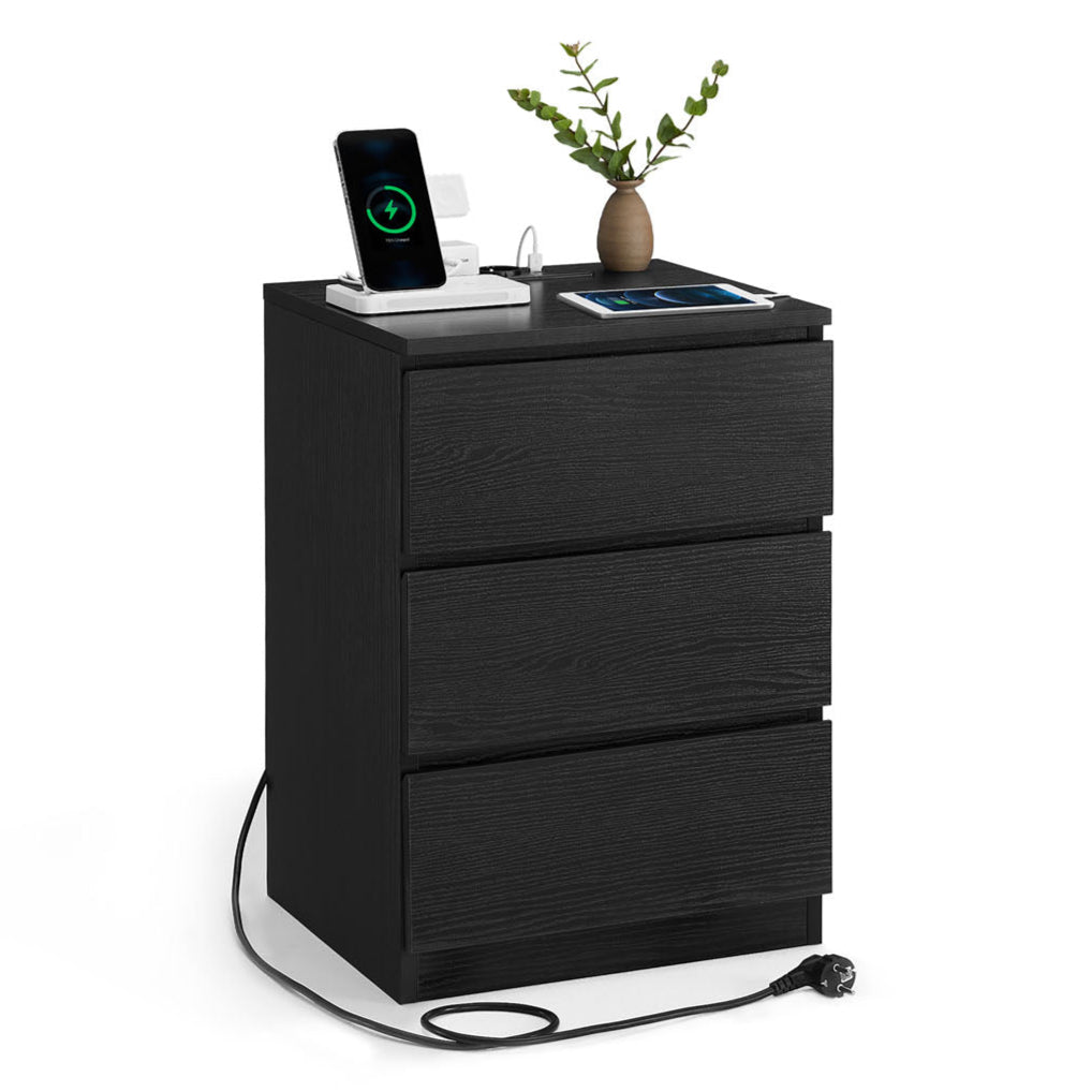 Table de chevet avec multiprise table d’appoint avec 3 tiroirs 2 prises ca 2 ports usb façades de tiroirs biseautées pour salon chambre bureau moderne noir 12_0007609