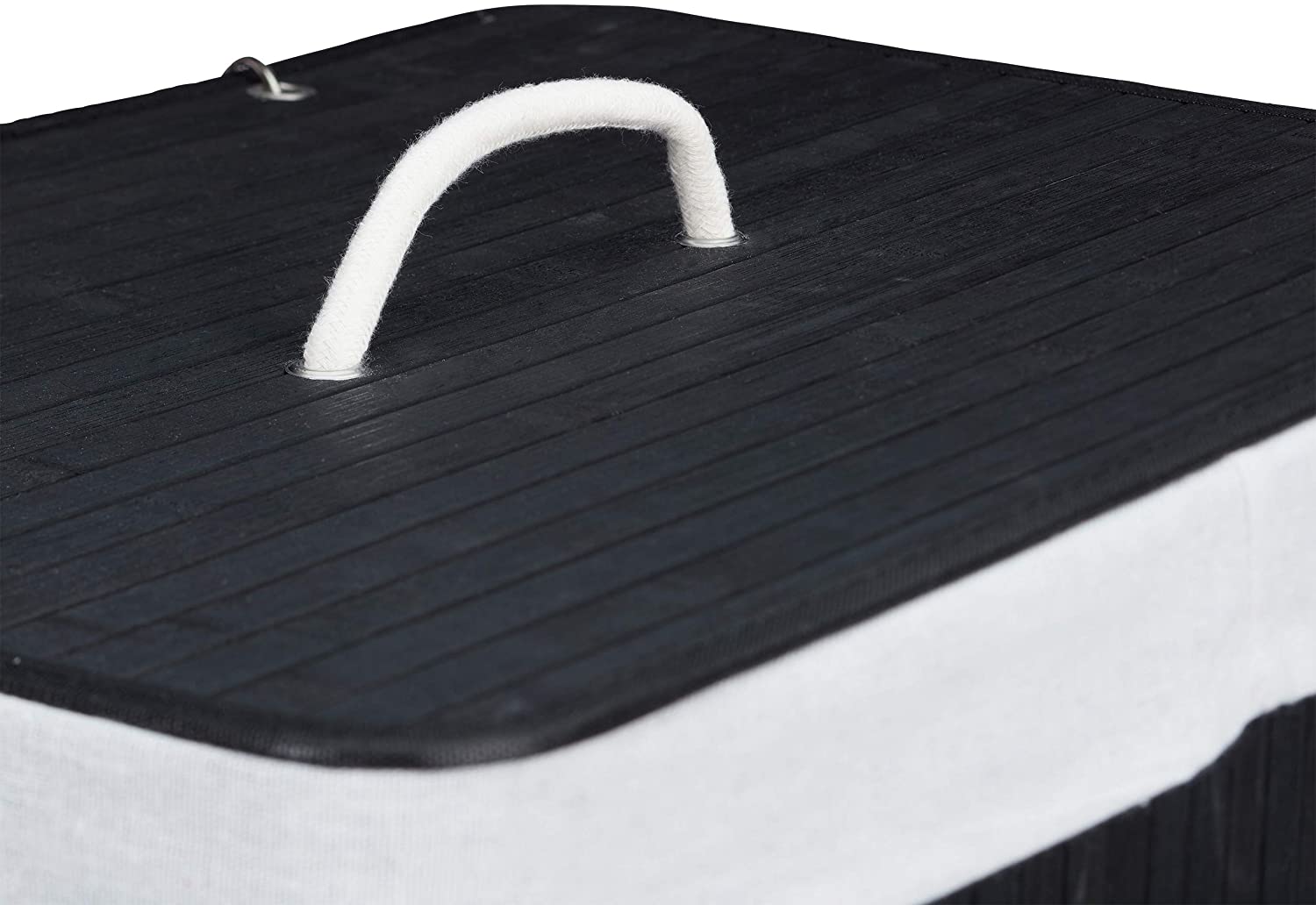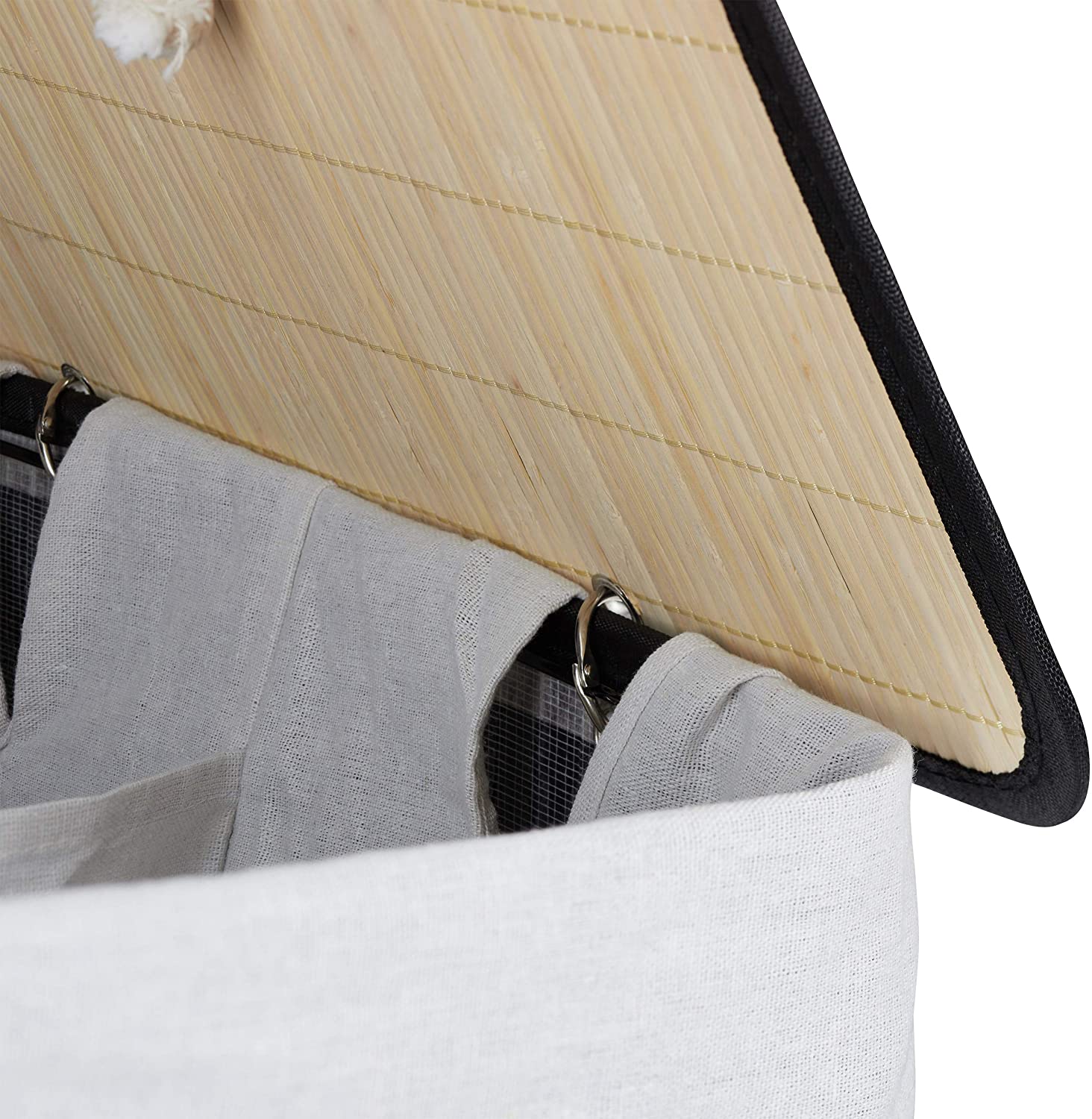 Panier corbeille à linge 2 compartiments avec sac 95 litres bambou noir 13_0001904_3
