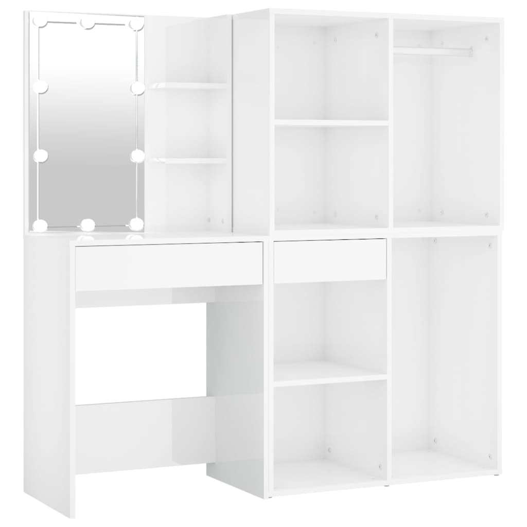 Coiffeuse à led et 2 armoires blanc brillant bois d'ingénierie 02_0006286