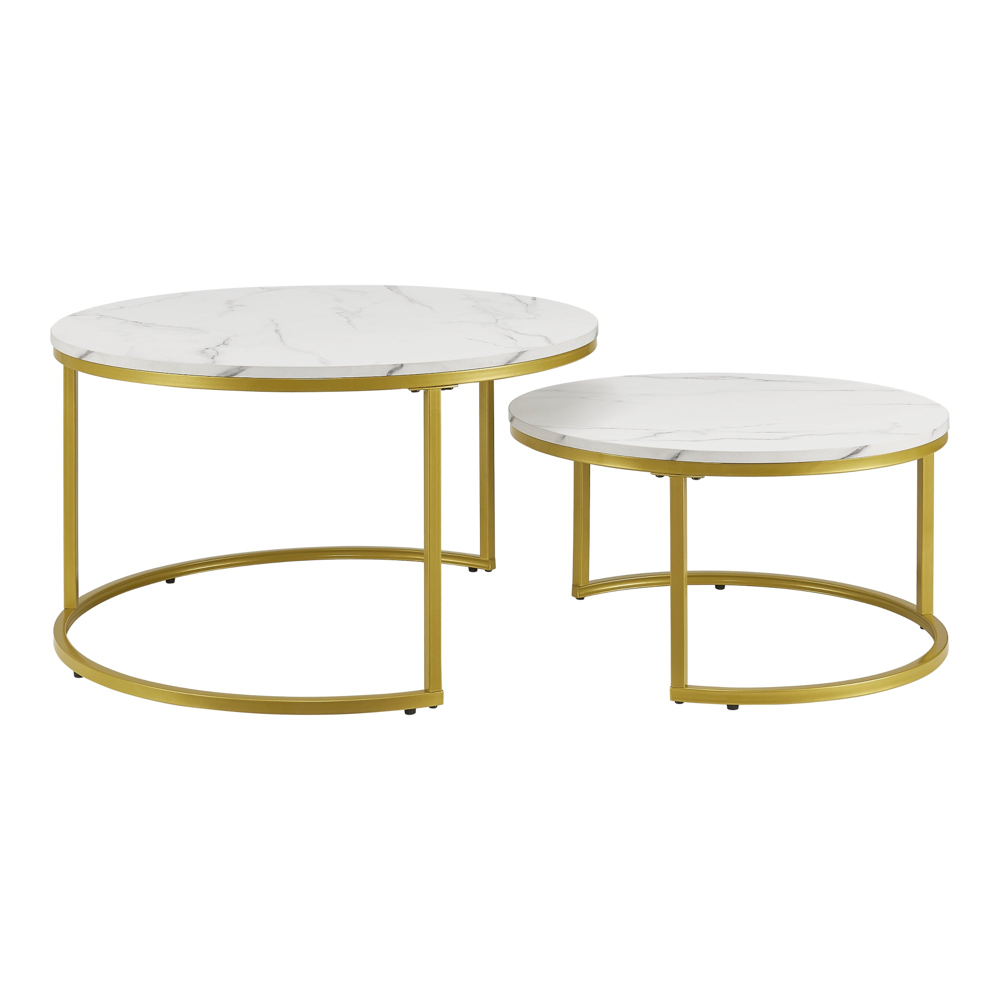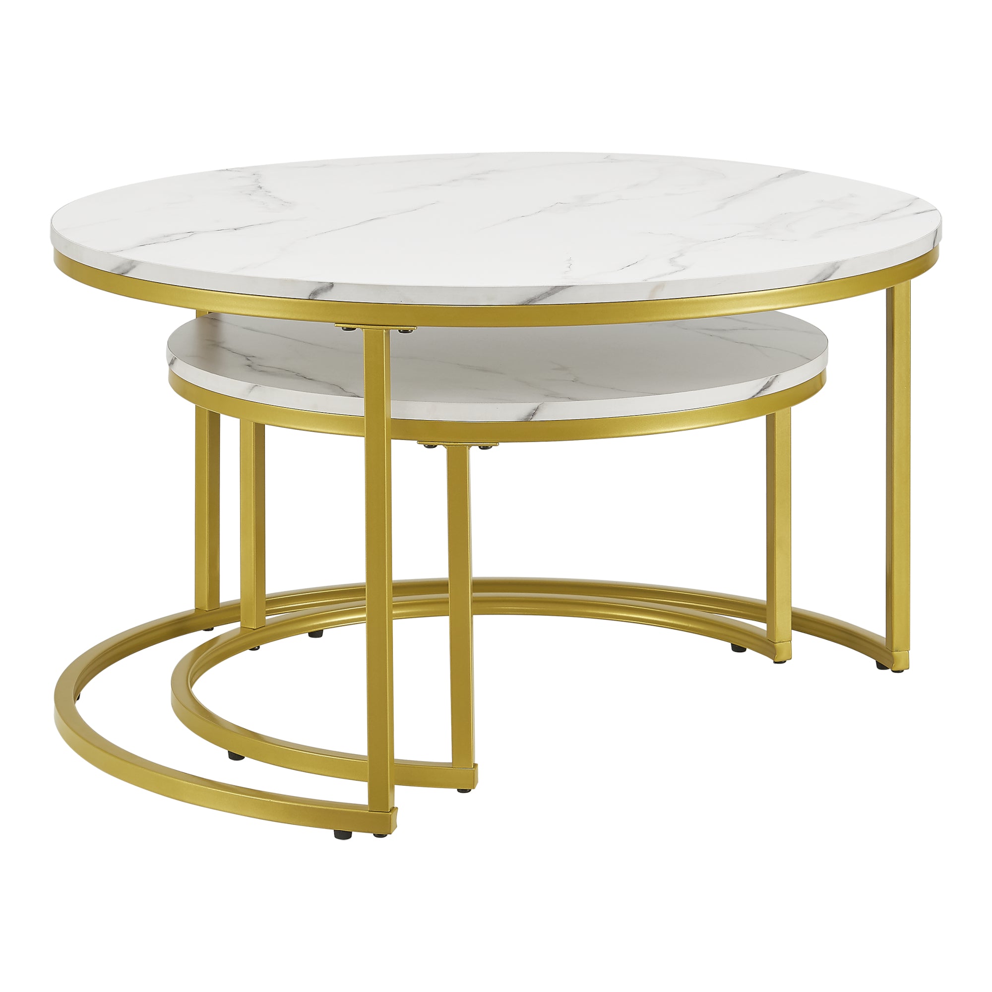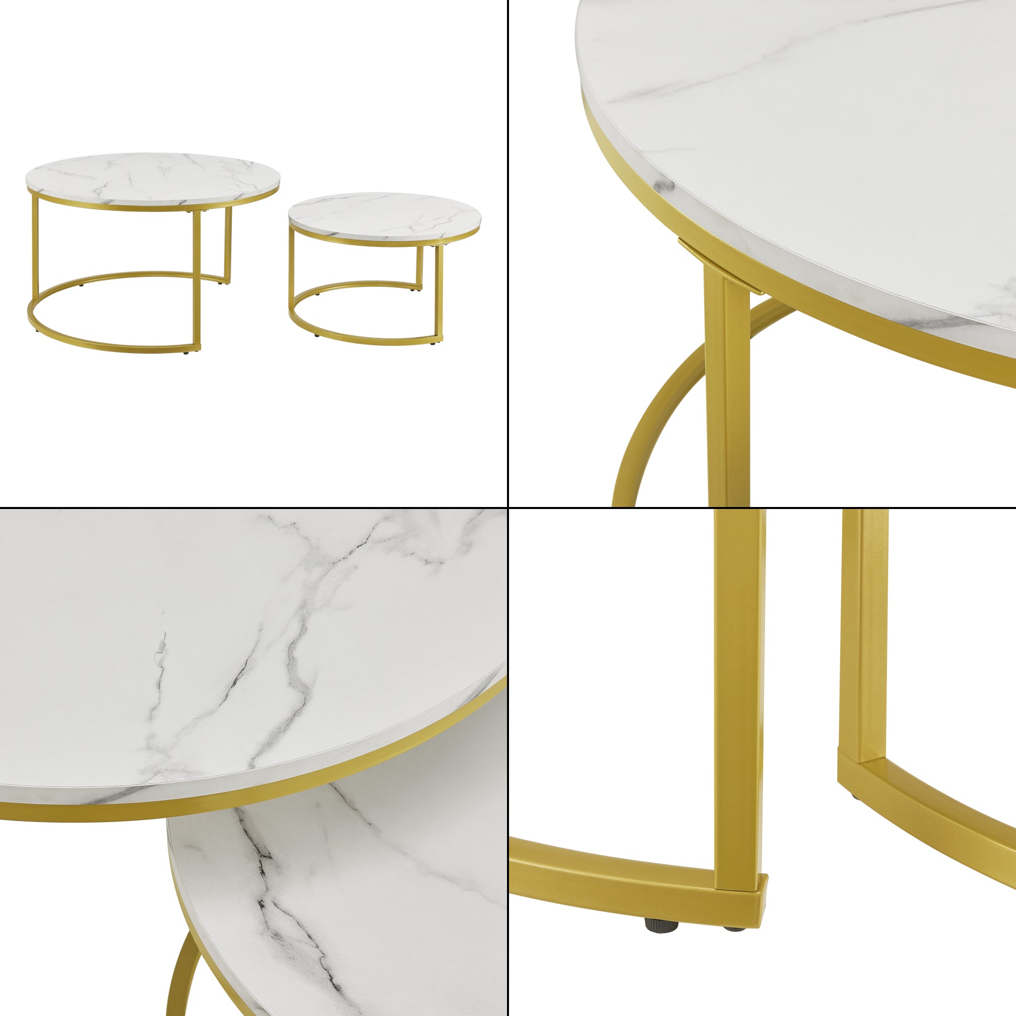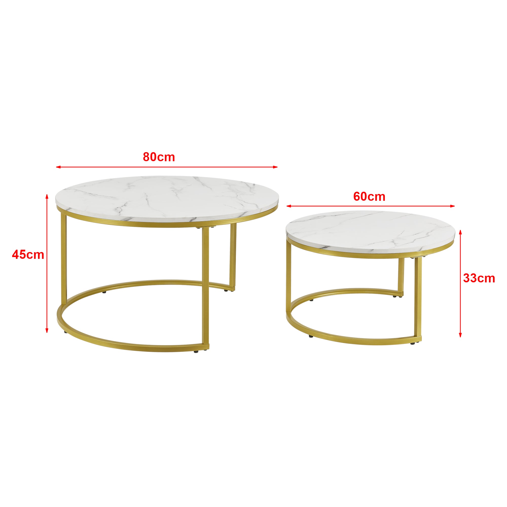 Set de 2 tables basses rondes gigognes effet marbre blanc doré 03_0008355
