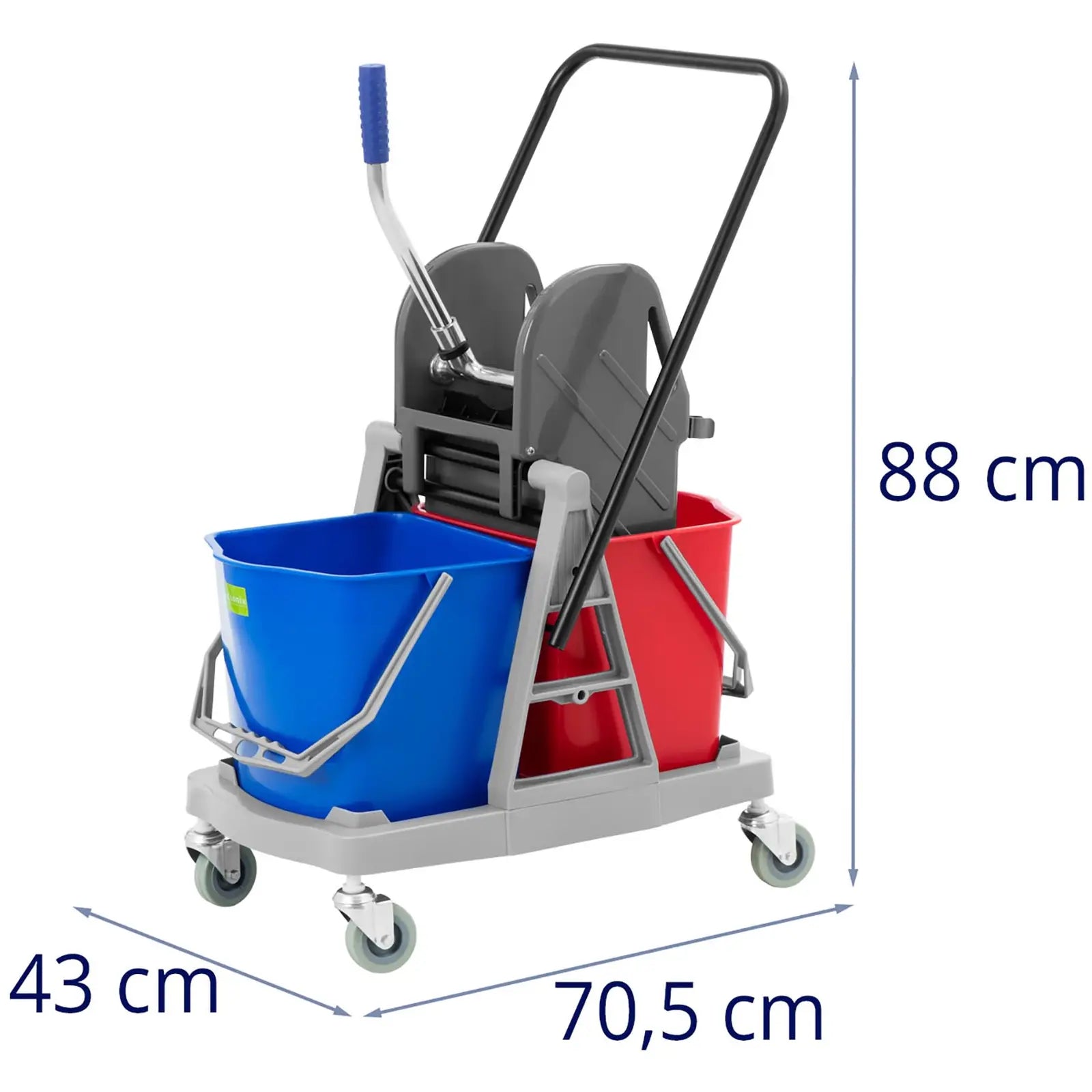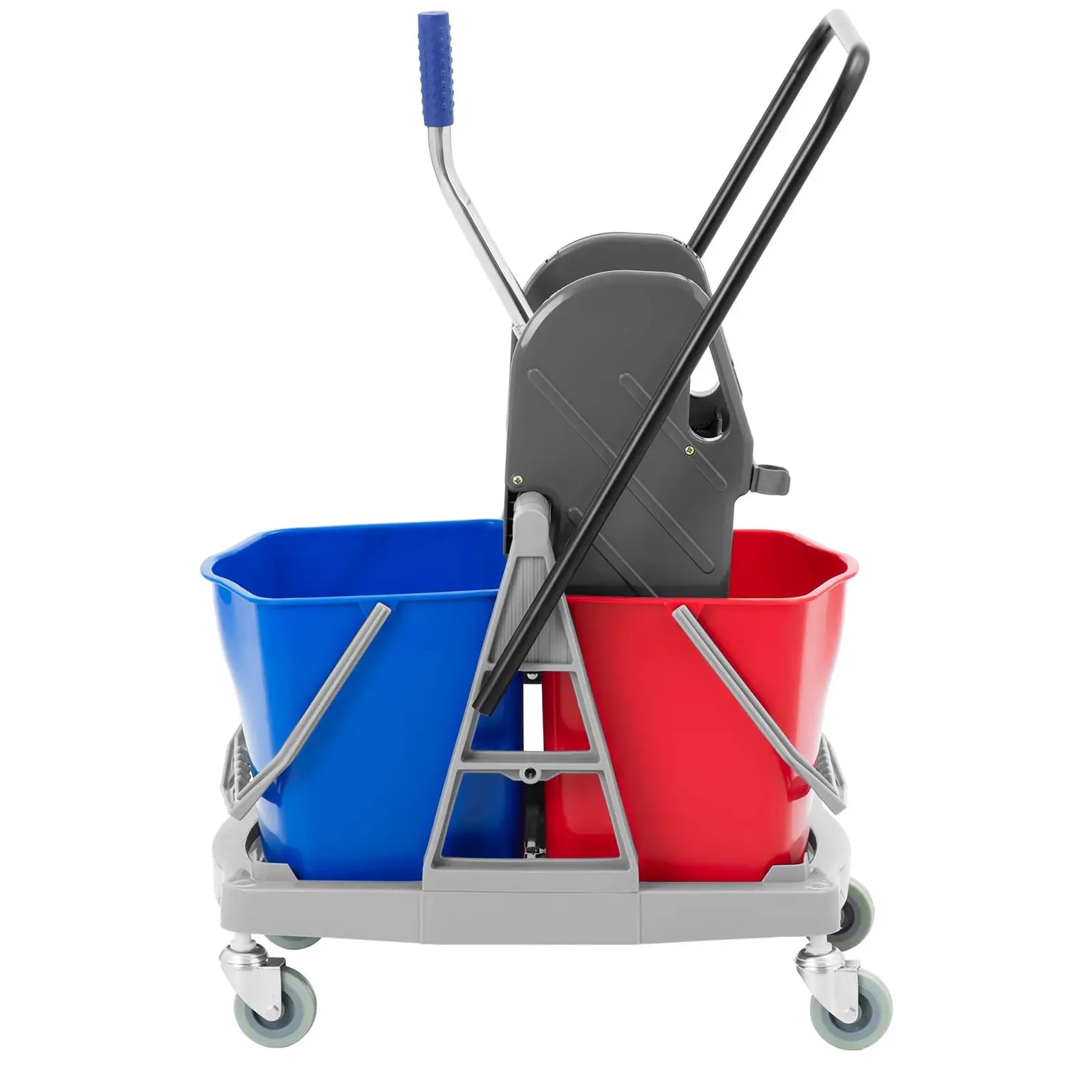Chariot de ménage 2 seaux 2 x 17 litres PVC PP fer bleu gris rouge 14_0008602