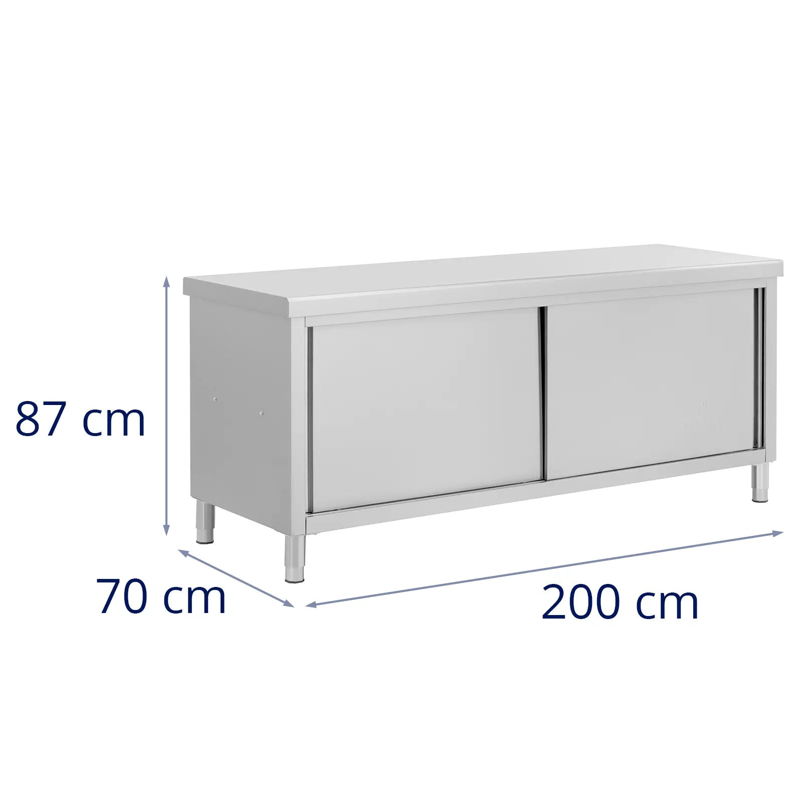 Meuble bas de cuisine armoire de travail professionnel avec double ouverture 200 x 70 cm 500 kg acier inoxydable 14_0009358