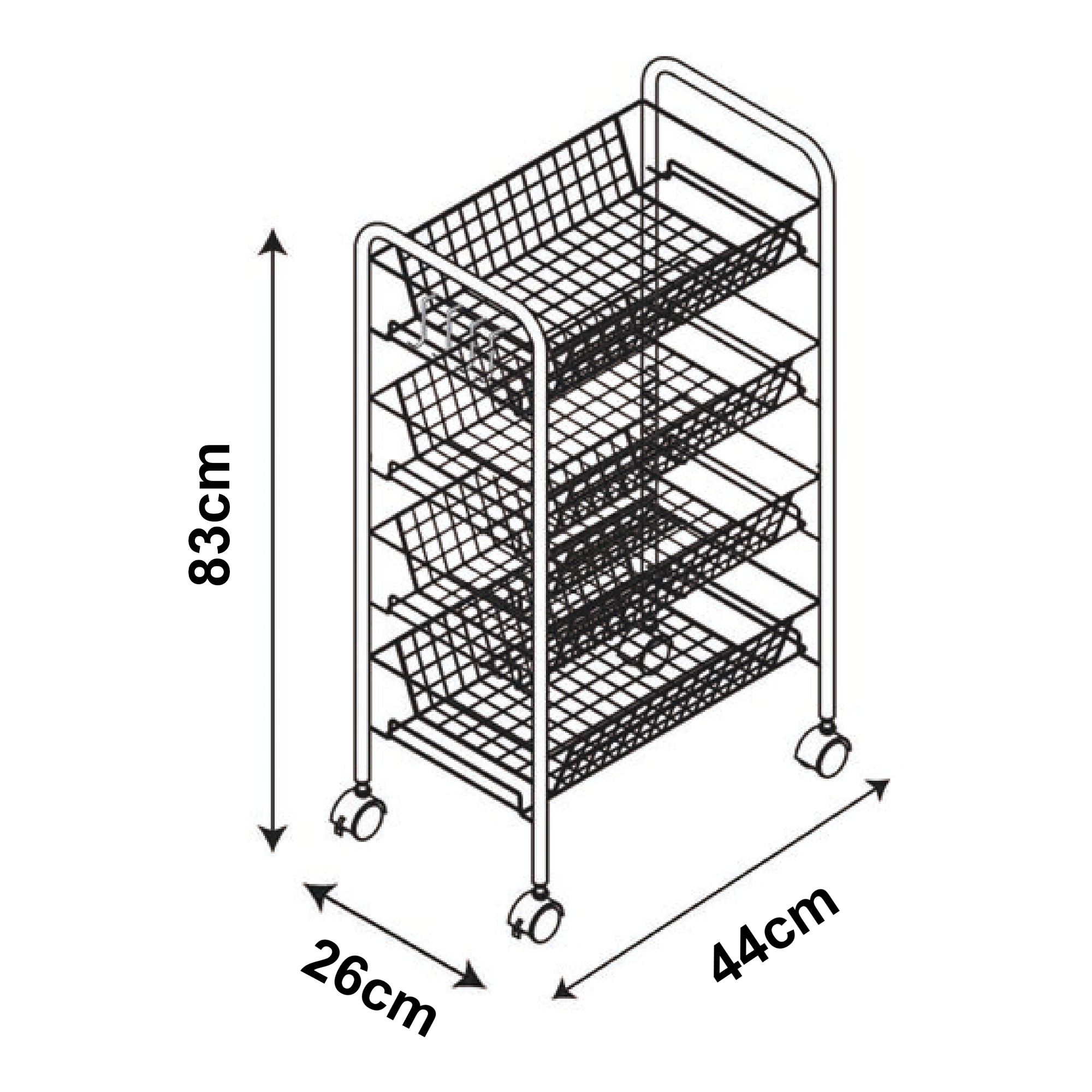 Notre desserte à roulettes est l'accessoire idéal pour votre maison ou votre espace de travail. Facile à déplacer grâce à ses 4 roulettes, elle offre une multitude de possibilités d'utilisation. Ses 4 paniers de rangement permettent un accès facile aux boissons, légumes et autres objets. De plus, elle est équipée de 4 crochets pratiques pour suspendre les torchons, ustensiles et cuillères en bois. Avec son style intemporel, notre chariot de service s'harmonise aisément avec tous les styles de décoration.