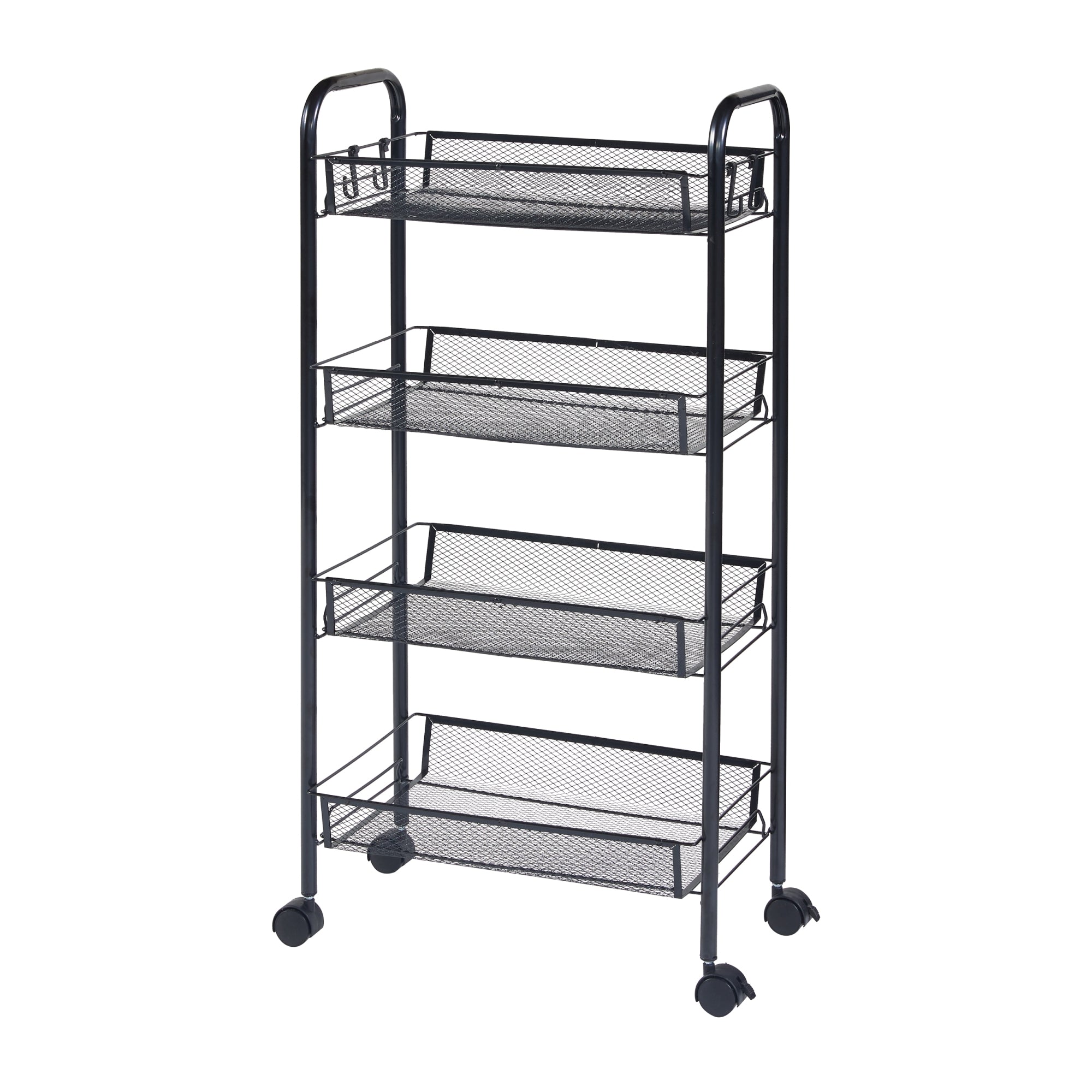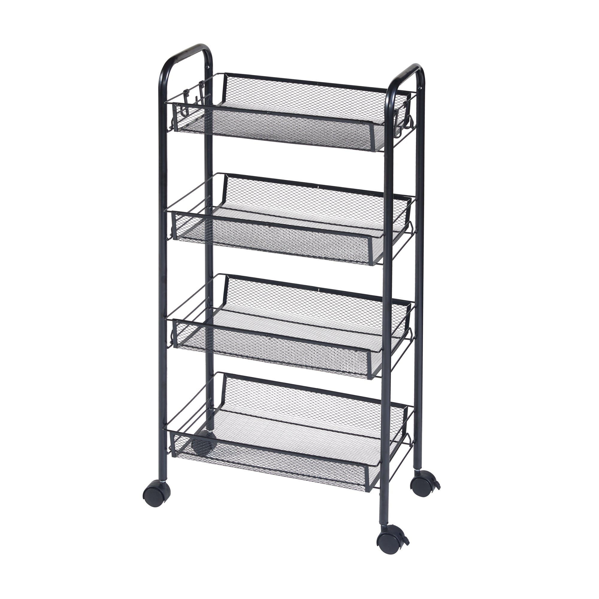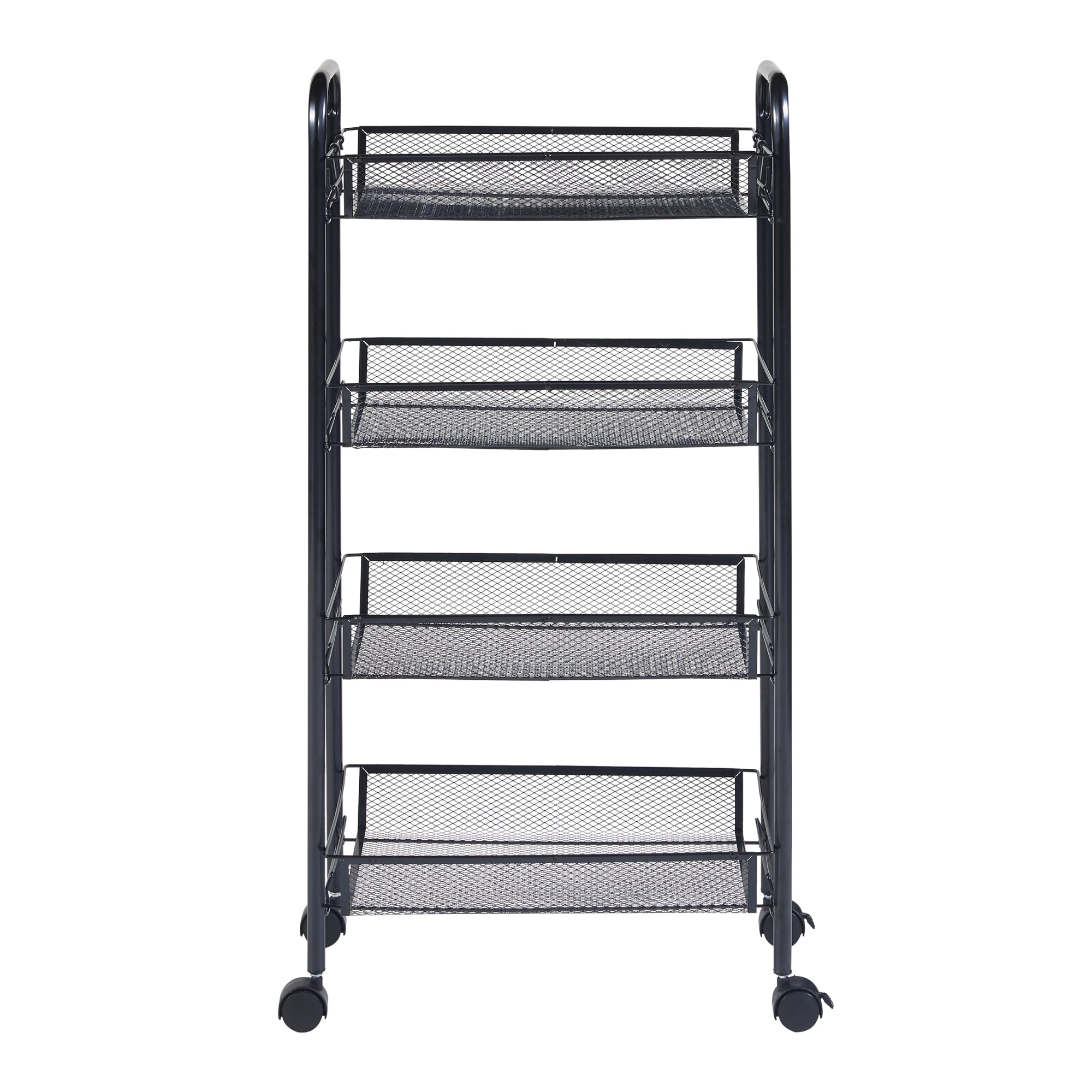 Chariot de service desserte cuisine salon meuble de rangement à 4 niveaux 83 x 44 x 26 cm acier noir 03_0009261