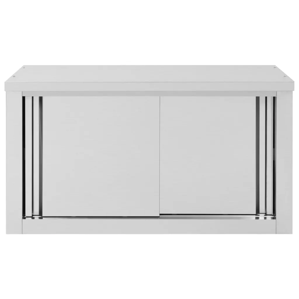 Armoire de cuisine murale avec portes coulissantes 90 x 40 x 50 cm rangement pratique style moderne en acier inoxydable argenté 02_0046014