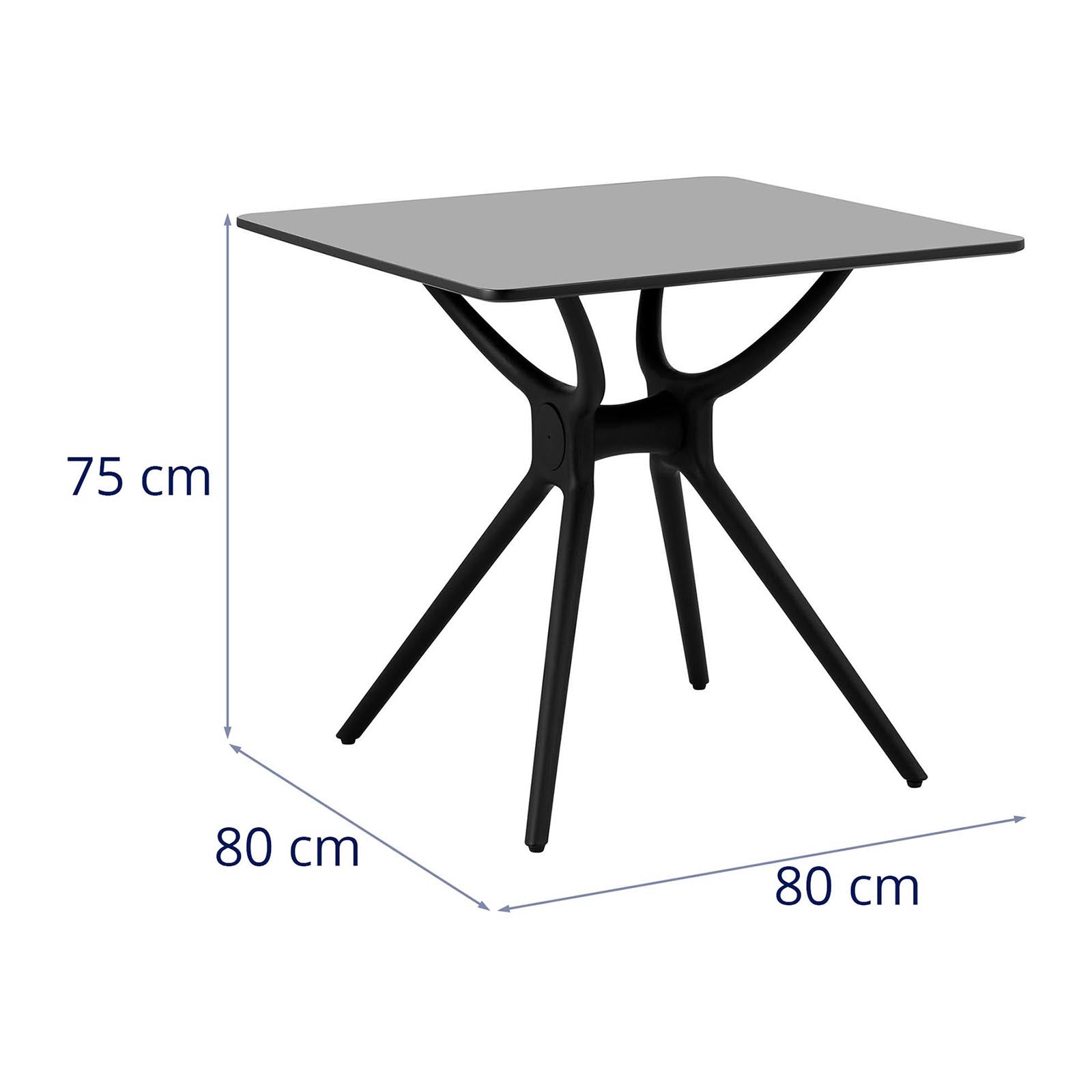 Grâce aux matériaux utilisés, la table carrée résiste aux contraintes les plus diverses.