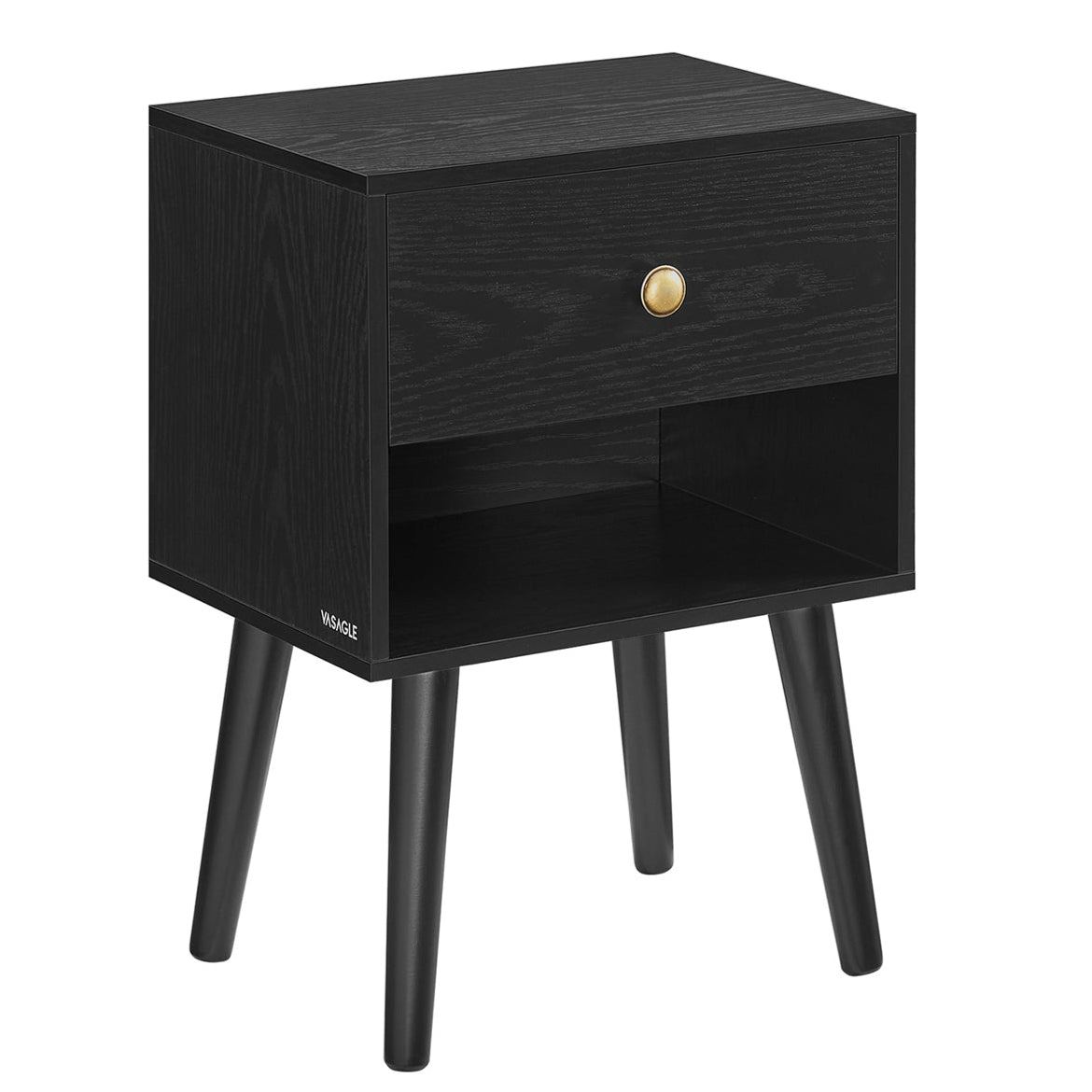Tables de chevet tables basses avec tiroir et compartiment ouvert pieds en bois 28 x 39 x 55 cm tables pour salon chambre canapé noir 12_0007700