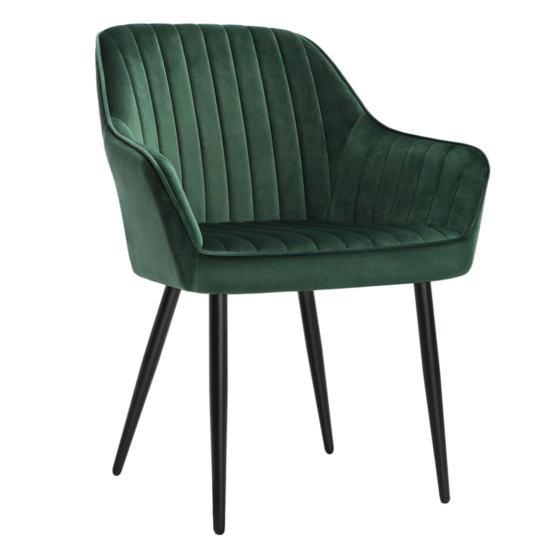 Chaise de salle à manger fauteuil siège rembourrée avec accoudoirs largeur d’assise 49 cm pieds en métal revêtement en velours charge 110 kg pour salon chambre vert 12_0004906