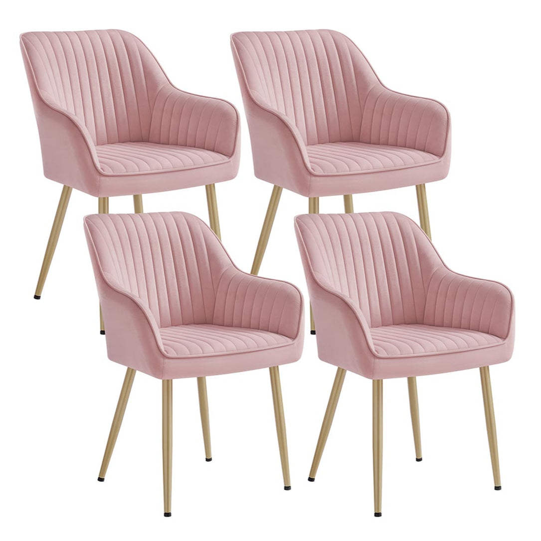 Chaise de salle à manger lot de 4 fauteuil siège rembourrée avec accoudoirs largeur d’assise 49 cm pieds en métal revêtement en velours charge 110 kg pour salon chambre rose 12_0004916