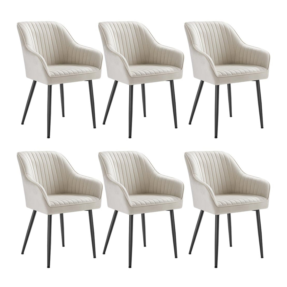 Chaise de salle à manger fauteuil siège rembourrée avec accoudoirs largeur d’assise 49 cm pieds en métal revêtement en velours charge 110 kg pour salon chambre beige 12_0004918