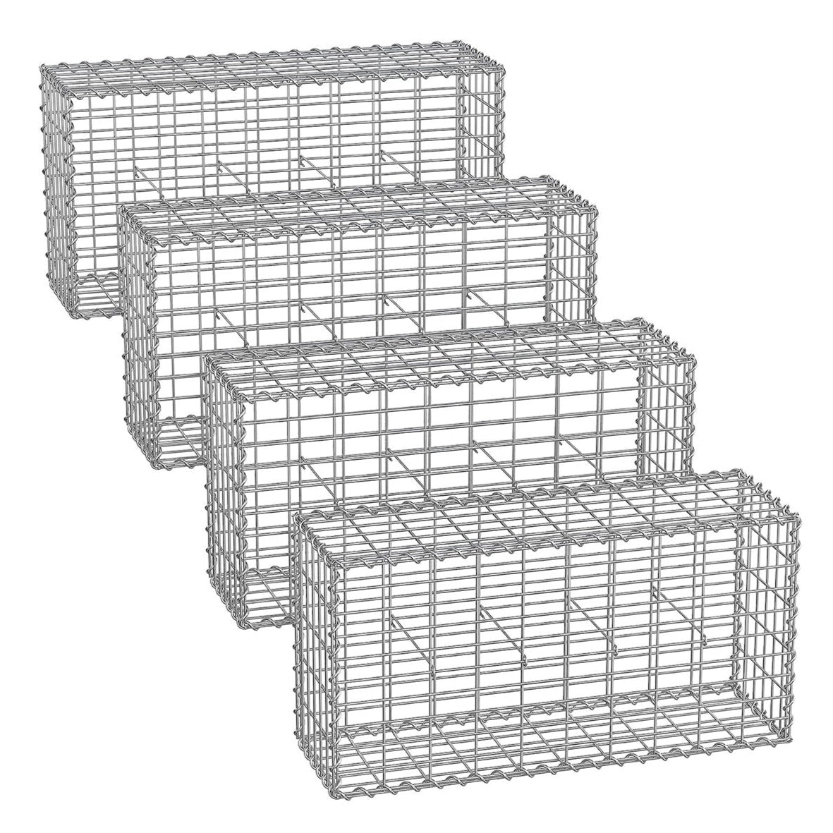 Gabion lot de 4 pour pierre cage en métal panier à pierre maille 5 x 10 cm galvanisé mur paterre décoration de jardin 100 x 50 x 30 cm gris 12_0005961