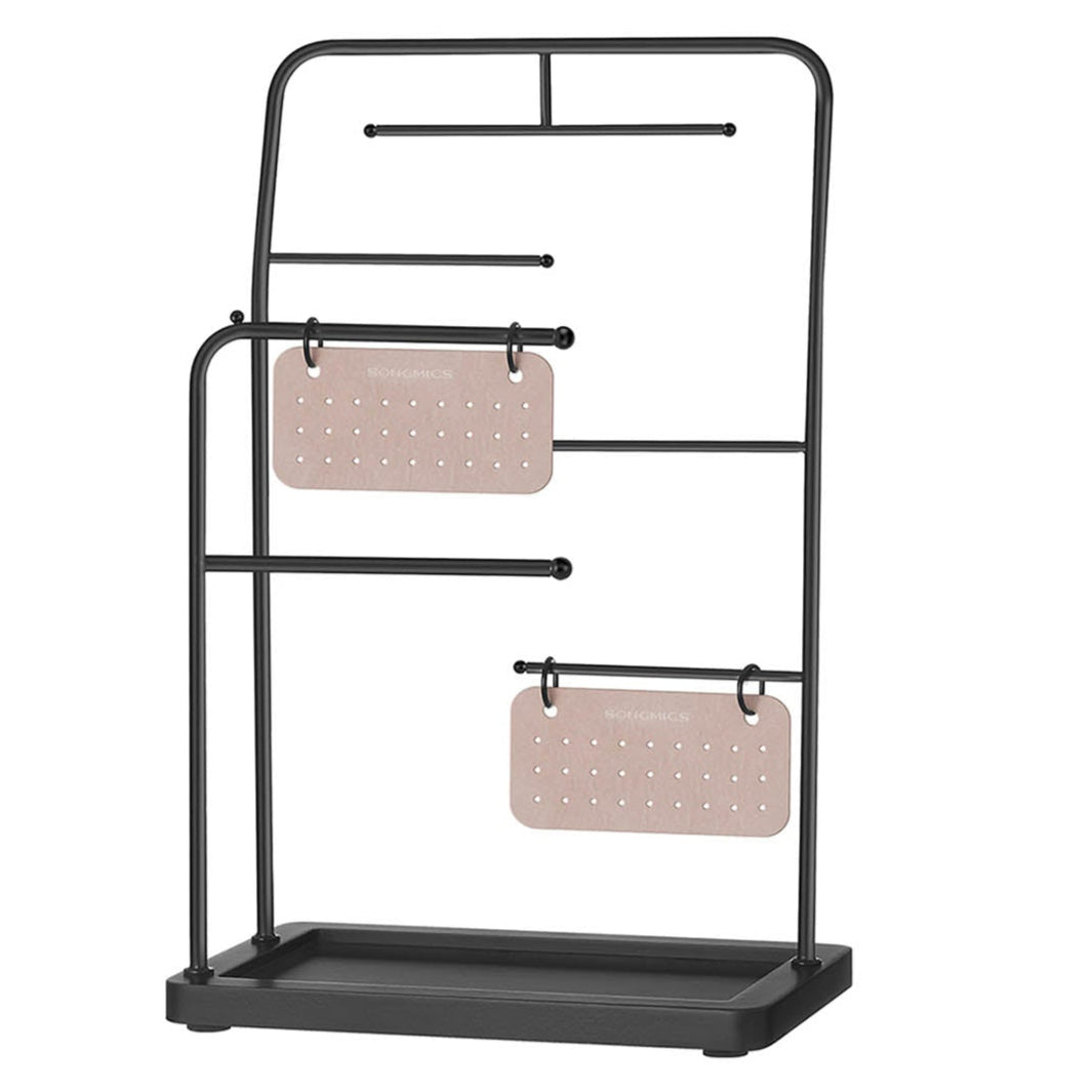 Porte-bijoux cadeau fete des meres présentoir en métal 2 plaques à boucles clous 6 tiges de suspension 13 x 21,5 x 33,7 cm pour colliers boucles d’oreilles et bracelets bagues 12_0007029