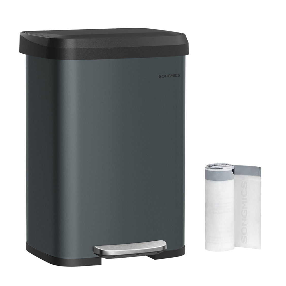 Poubelle de cuisine 50 litres poubelle à pédale en métal avec couvercle grande et haute gris 12_0007195