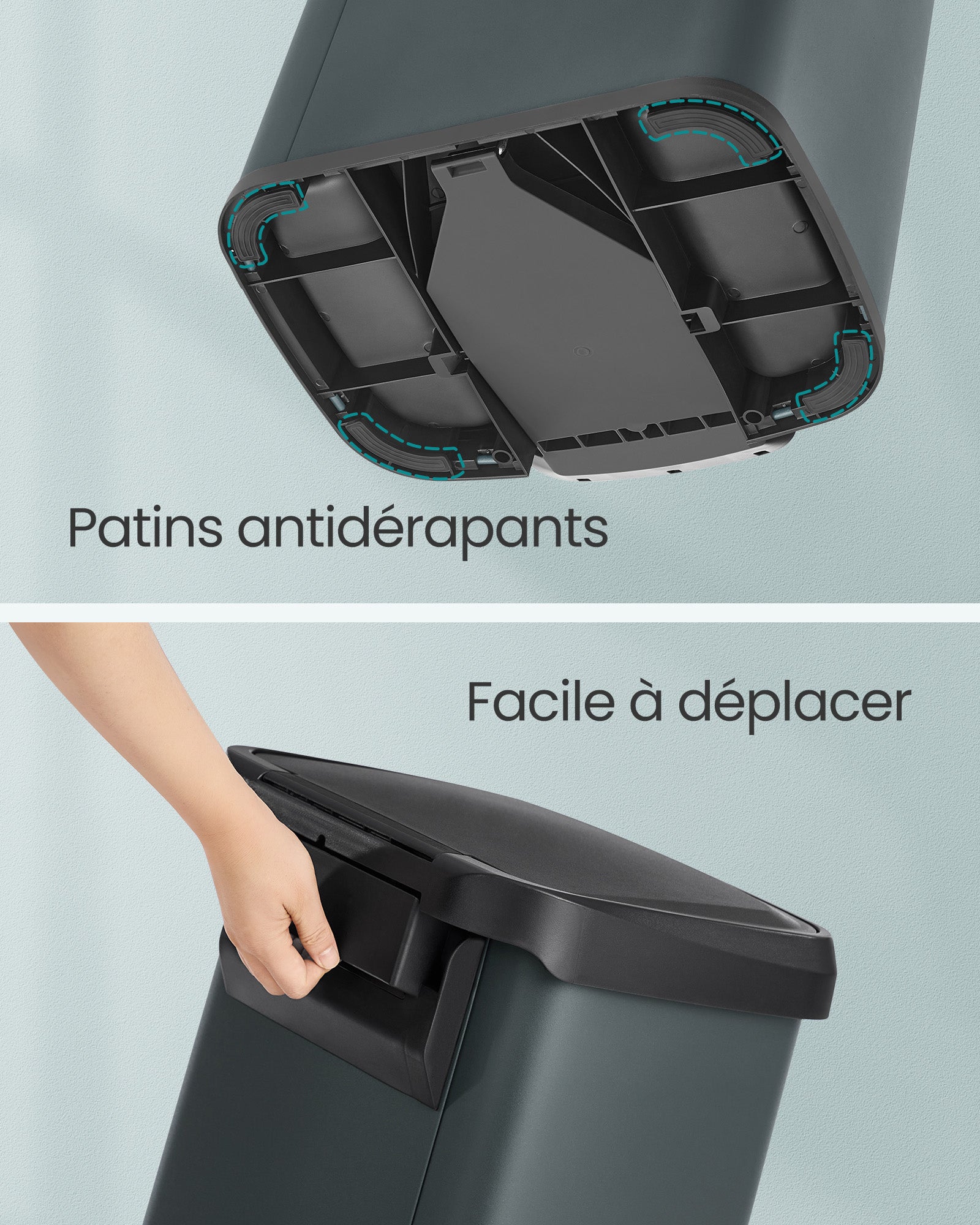 Cette poubelle de cuisine de 50 L est idéale pour les grandes familles grâce à son volume généreux qui évite de devoir la vider trop souvent. Elle allie praticité et design moderne pour s’intégrer parfaitement dans votre intérieur.