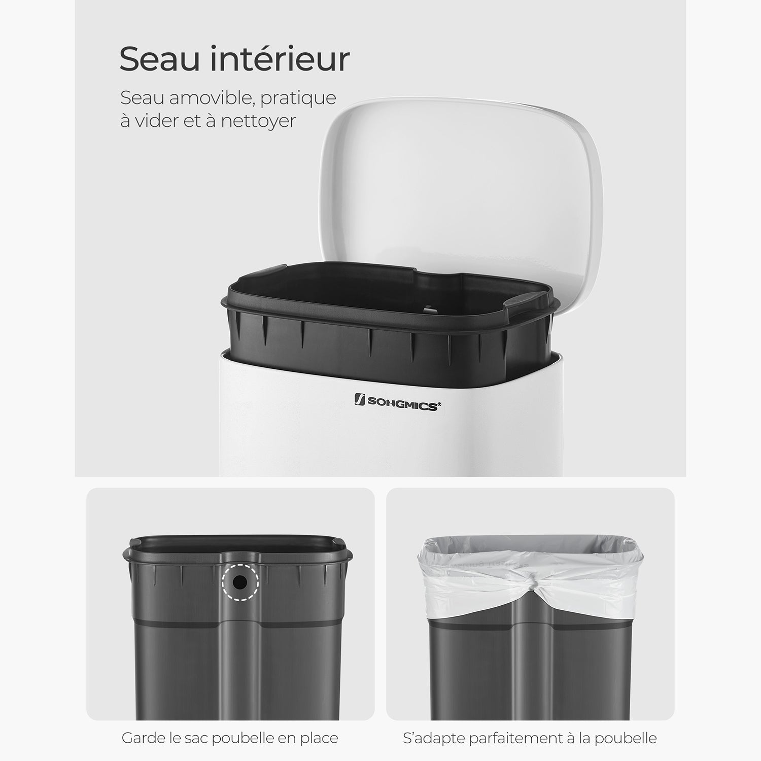 Dimensions du seau interne : 35 x 23,5 x 57,5 cm (L x l x H)