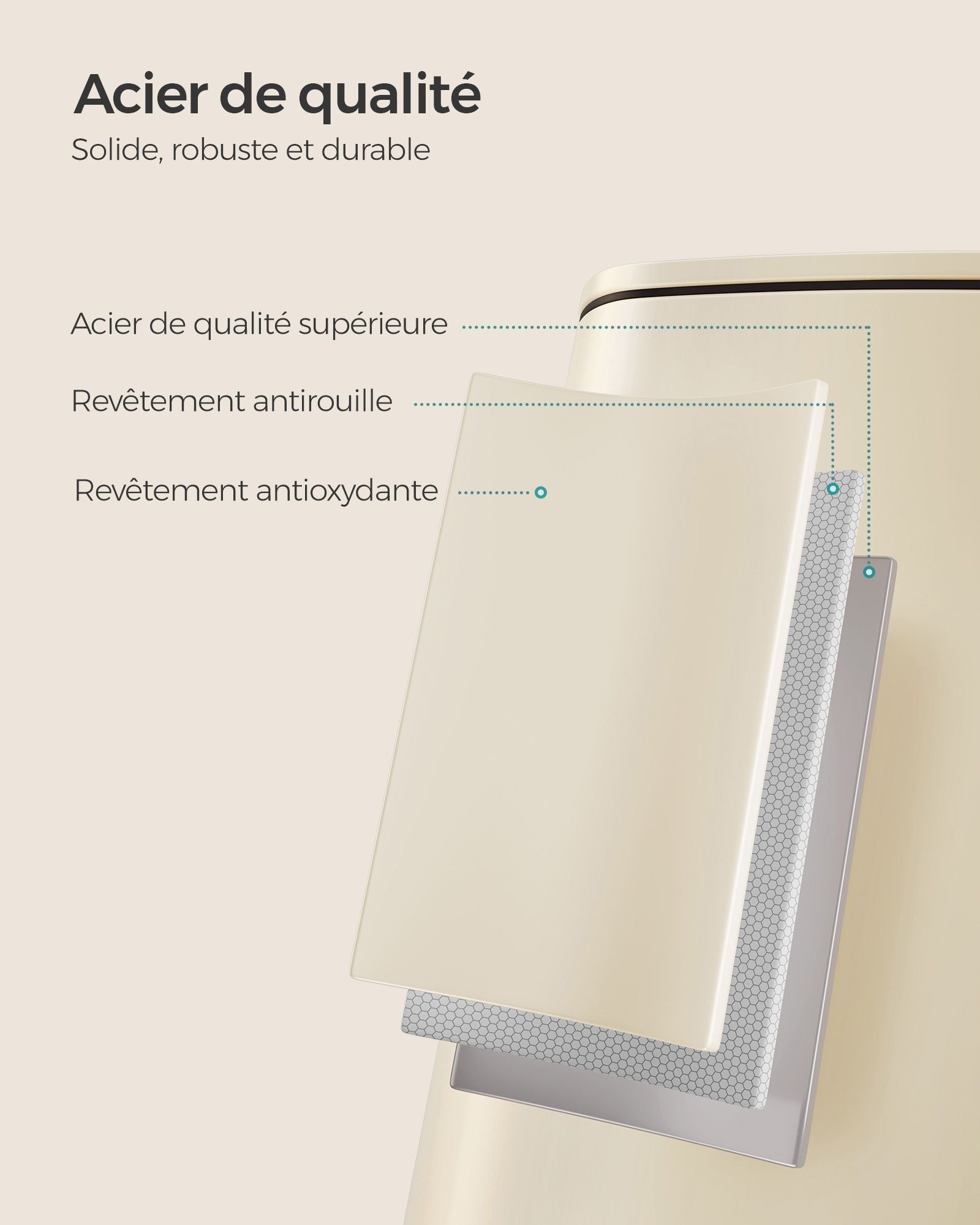 Poubelle de cuisine poubelle 30 litres poubelle à pédale en acier avec seau intérieur fermeture douce et maintien en ouverture argent métallique beige 12_0007228