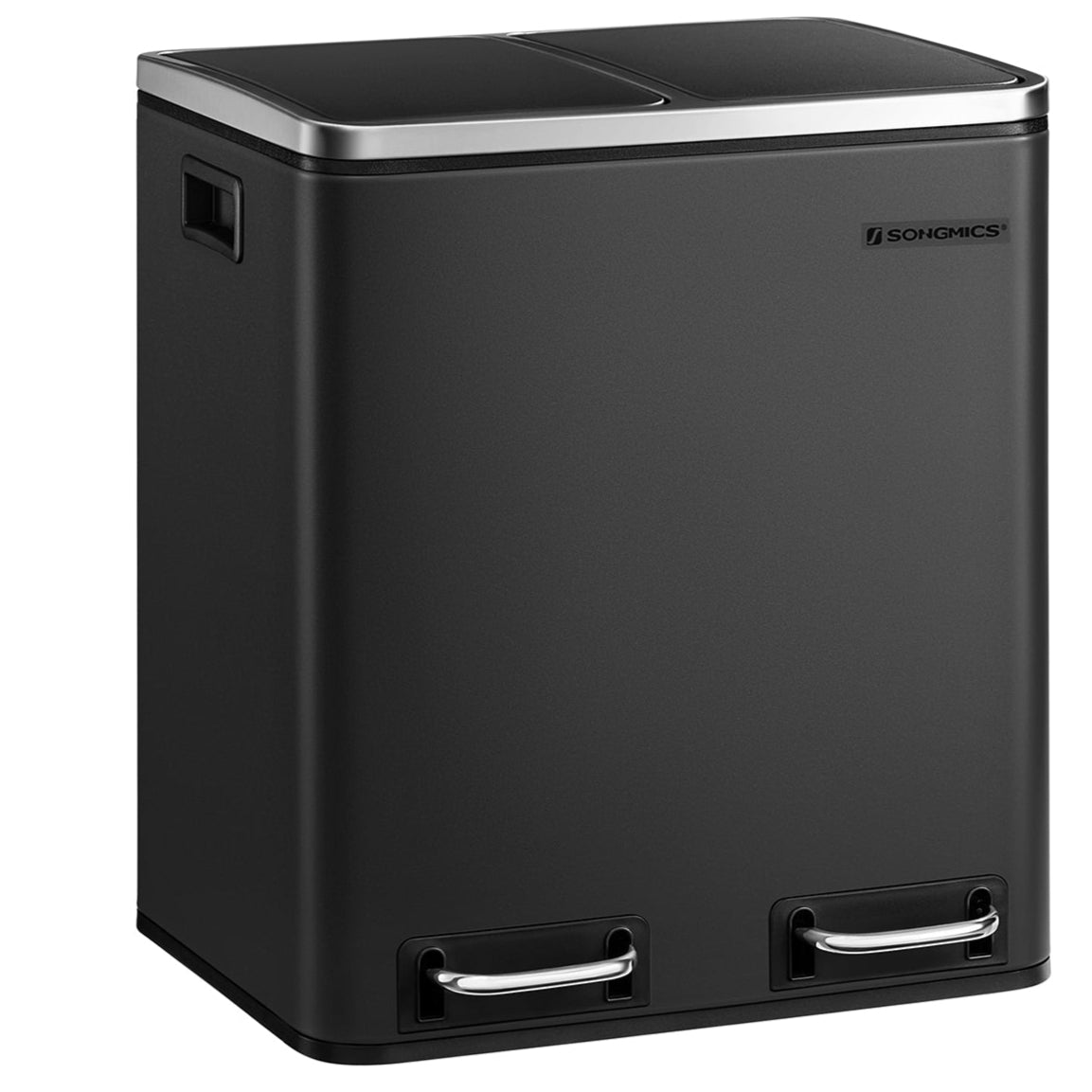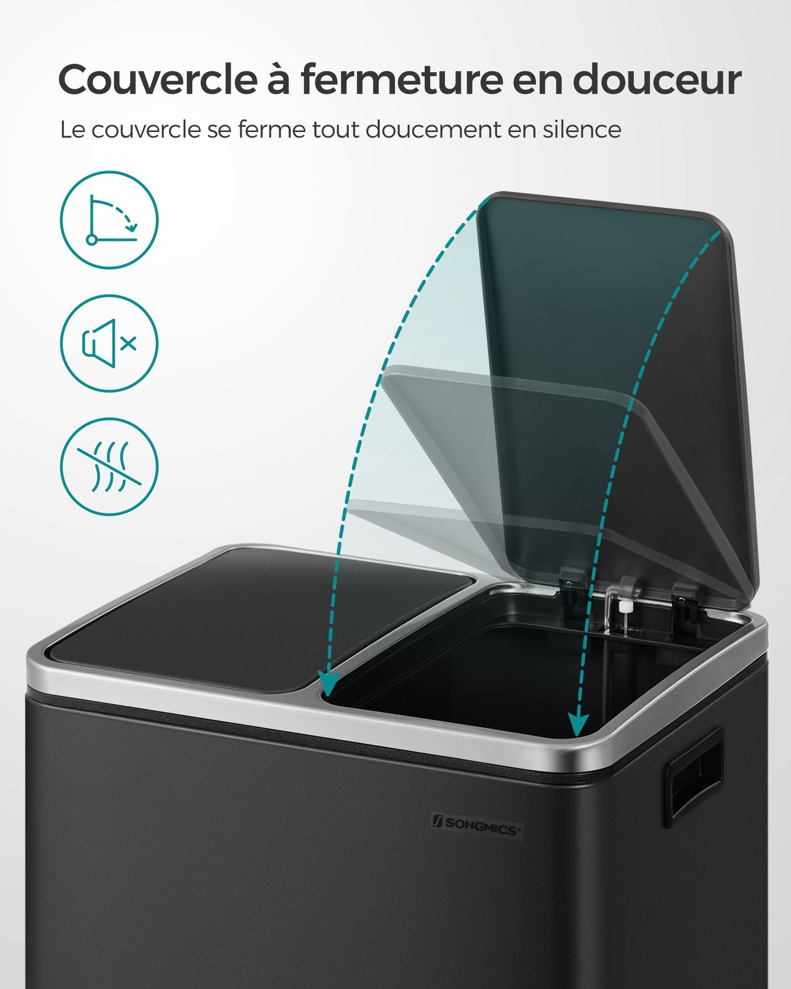 Poubelle en métal 30 litres poubelle à double compartiment 2 x 15 litres avec seaux intérieurs et poignées fermeture en douceur hermétique noir 12_0007271