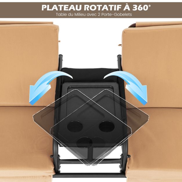 Plateau rotatif à 360°, table centrale avec porte-gobelet et sac isotherme pour une utilisation pratique
