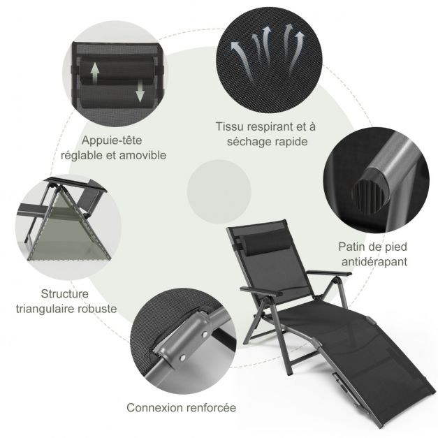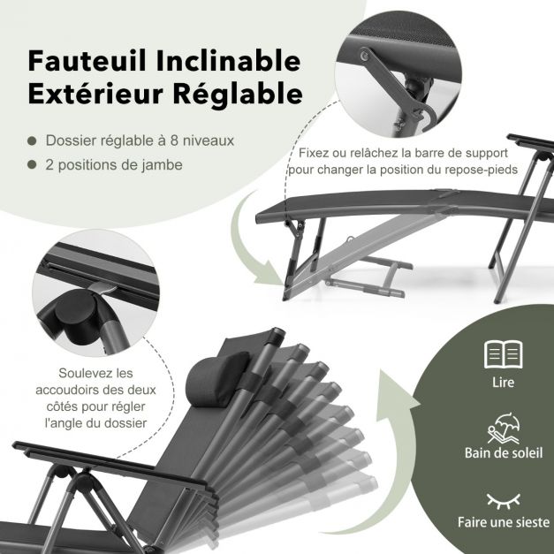 Dossier réglable en 8 positions pour lire, bronzer ou faire une sieste