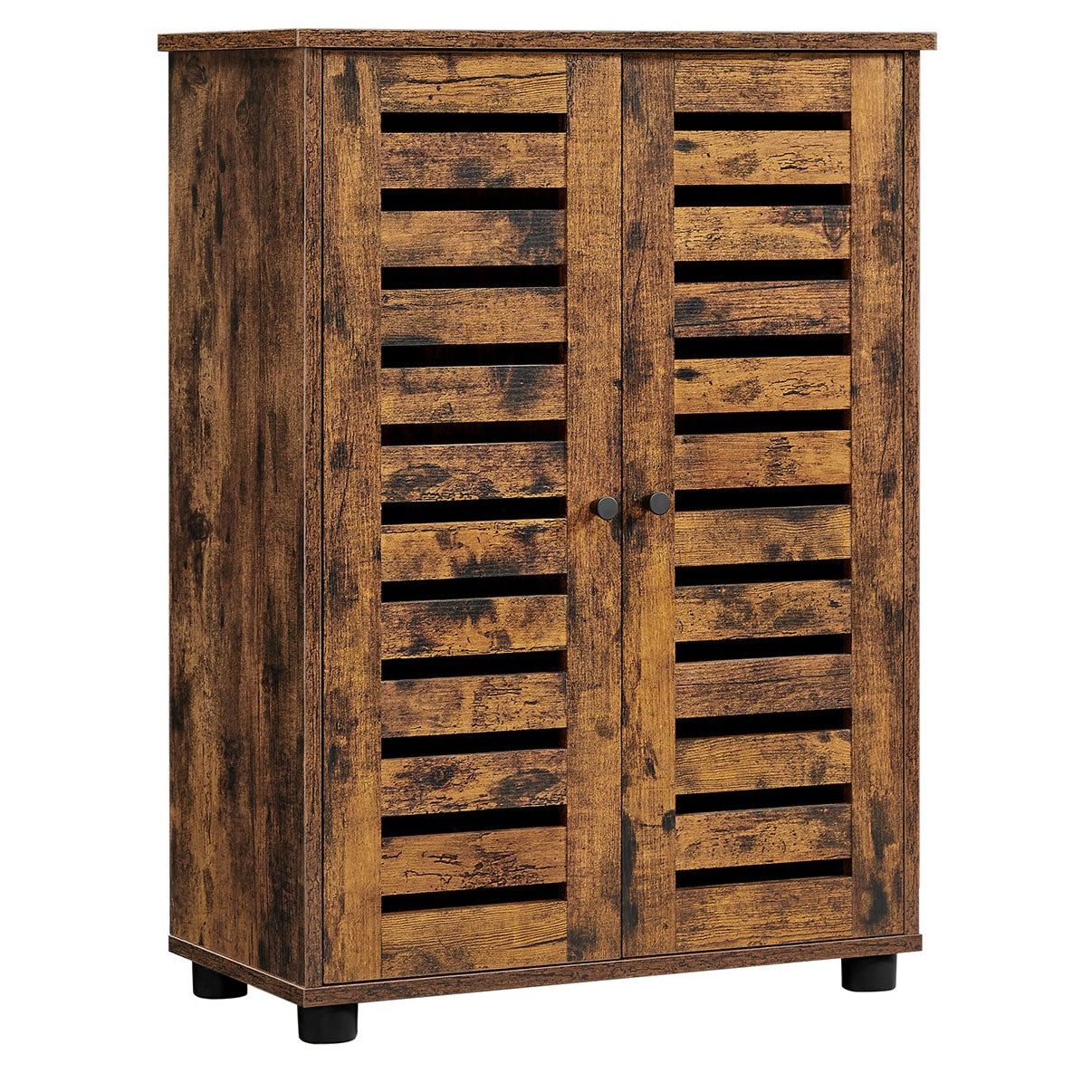Meuble de rangement armoire salle de bain 100 x 28 x 178 cm placard buffet avec 2 portes persiennes 2 planche réglable en hauteur marron 12_0006408