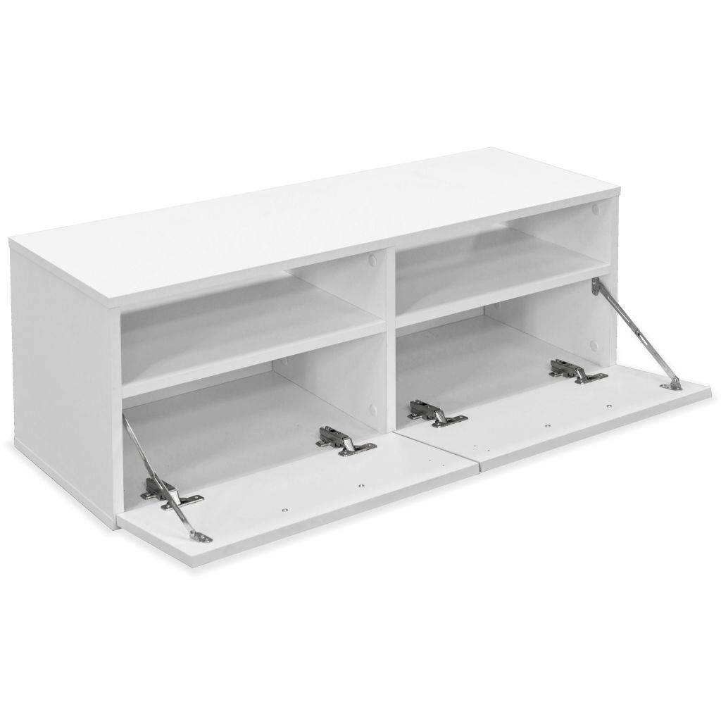 Il a deux étagères ouvertes et deux armoires avec des portes s'ouvrant vers le bas qui ont amplement d'espace de rangement pour votre lecteur DVD, console de jeu, récepteur numérique ou vos supports média.