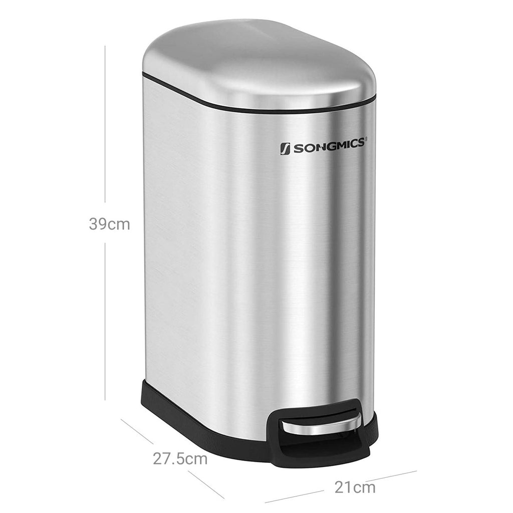 Poubelle en métal 10 litres compacte avec pédale seau intérieur amovible et poignée fermeture en douceur argent 12_0003242
