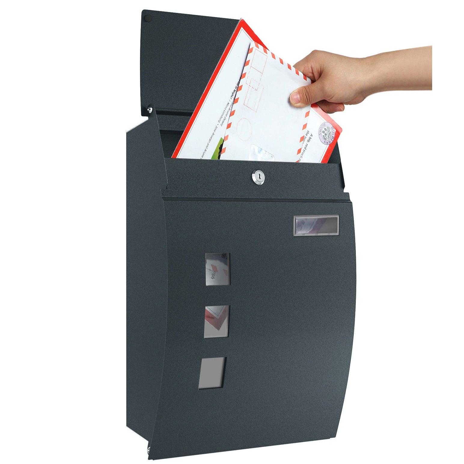Boîte aux lettres murale avec fenêtres de visualisation emplacement pour nom 2 clés facile à installer gris anthracite 12_0001643
