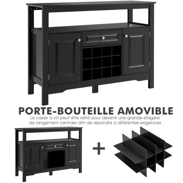 Buffet de cuisine 1 tiroir et 2 armoires 117 x 40,5 x 82,5 cm (l x l x h) meuble rangement pour salle à manger salon noir 20_0004744