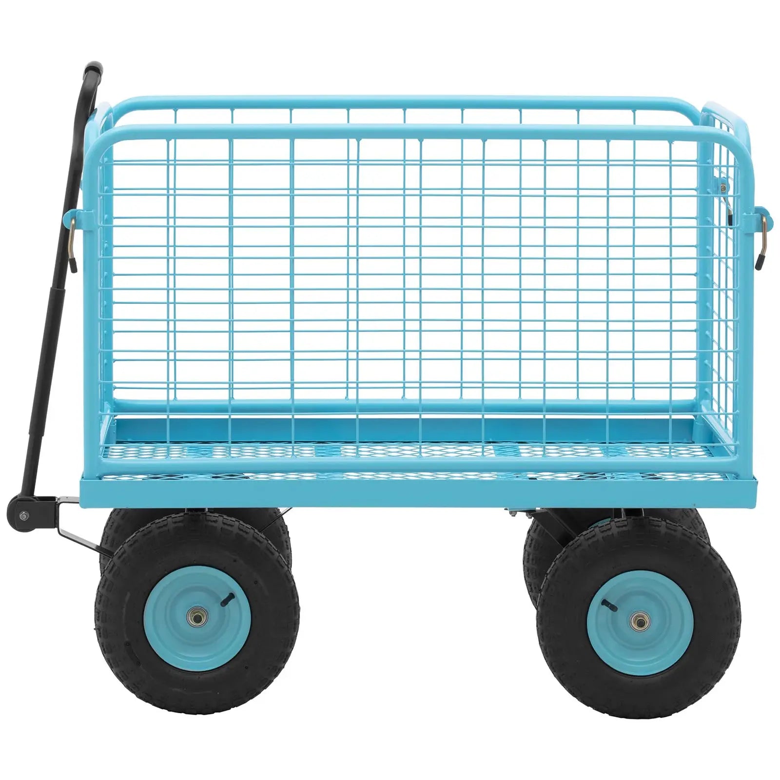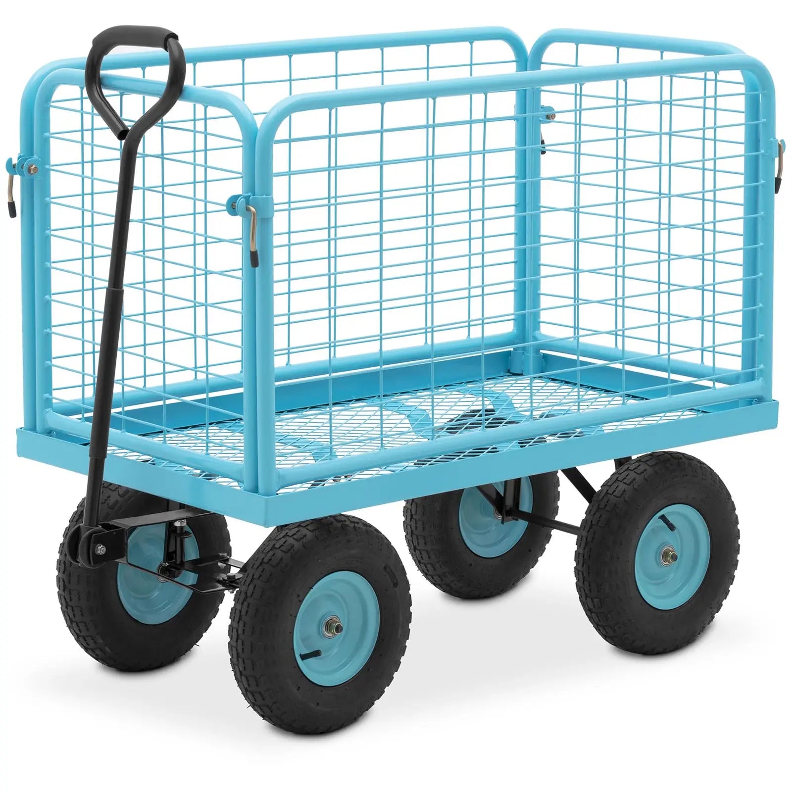 Chariot de jardin 400 kg barrières latérales amovibles caoutchouc plastique acier peint par poudrage bleu 14_0008601