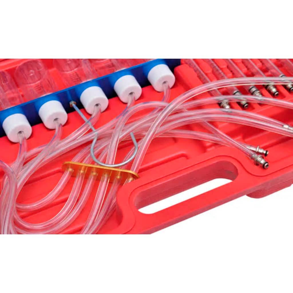 Ce kit est conçu pour mesurer la quantité de carburant que chaque injecteur retourne au réservoir de poste rapidement et efficacement.