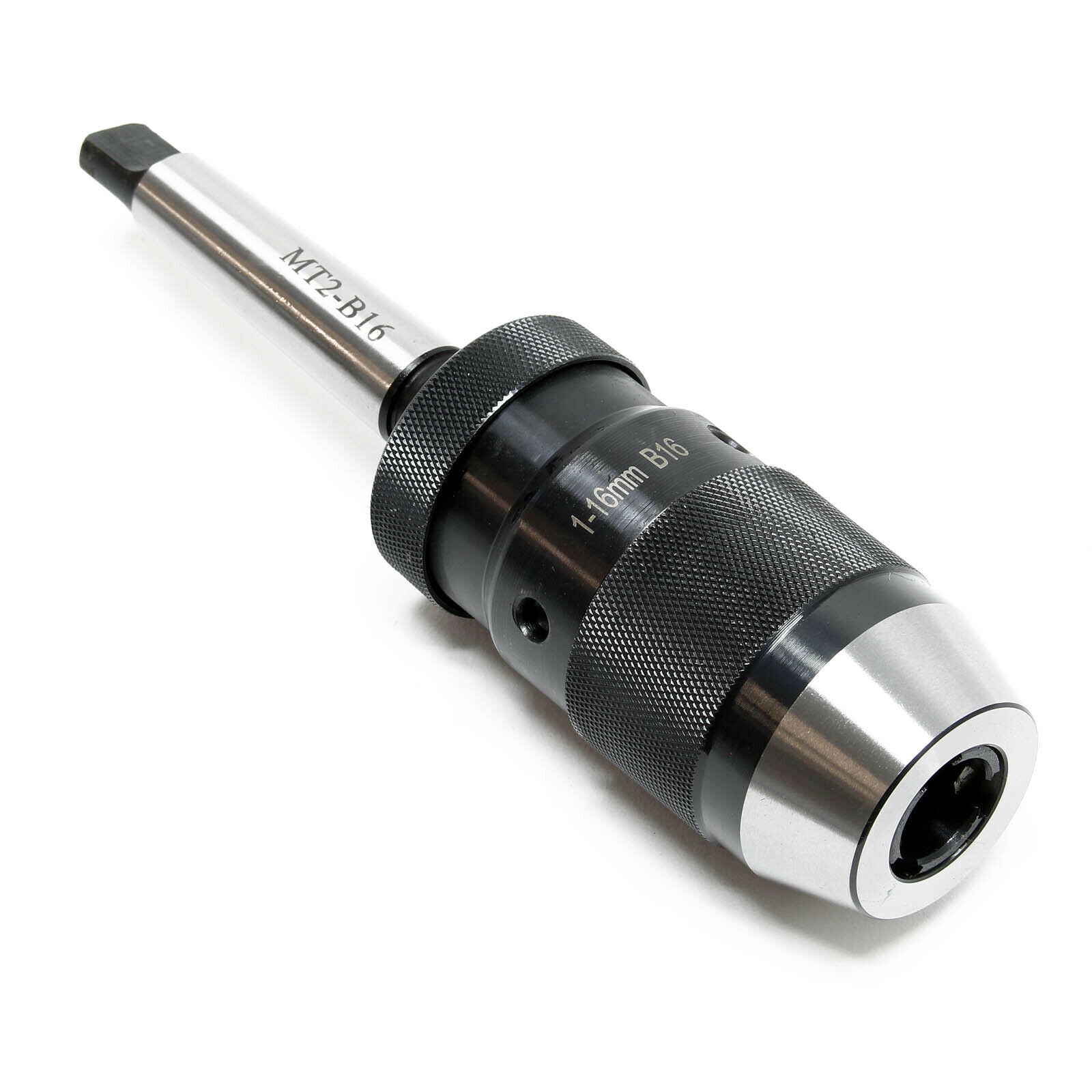 Un mandrin de perçage à serrage rapide robuste avec un cône morse (MK), avec une plage de serrage de 1 à 16 mm (cône B16) et convient à toutes les perceuses d‘établi et fraiseuses et des tours avec un enregistrement de MK2-B16 et une rotation à droite.