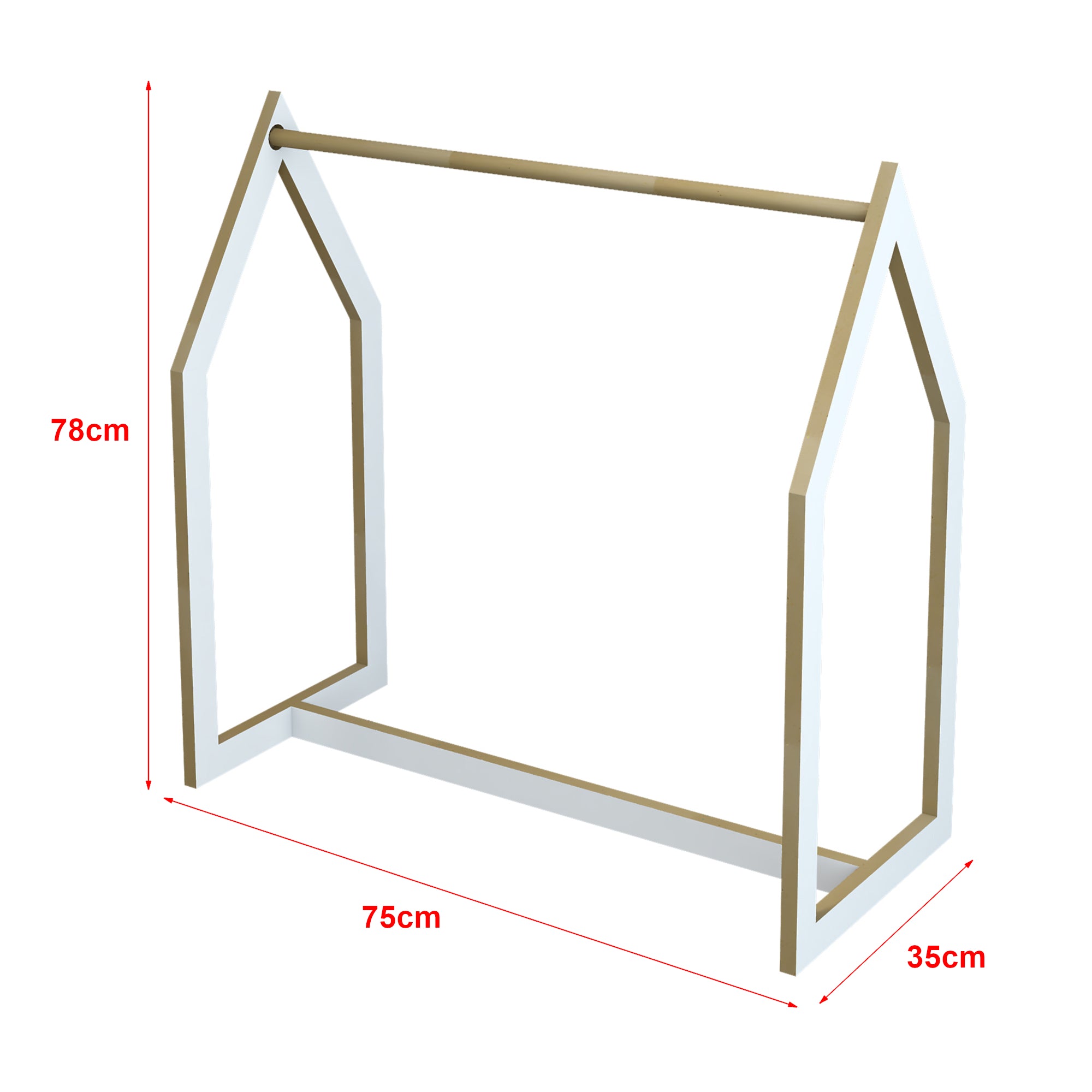 Portant à vêtements portemanteau porte-vêtements penderie dressing ouvert de forme cabane pour enfant 78 x 75 x 35 cm blanc 03_0010304