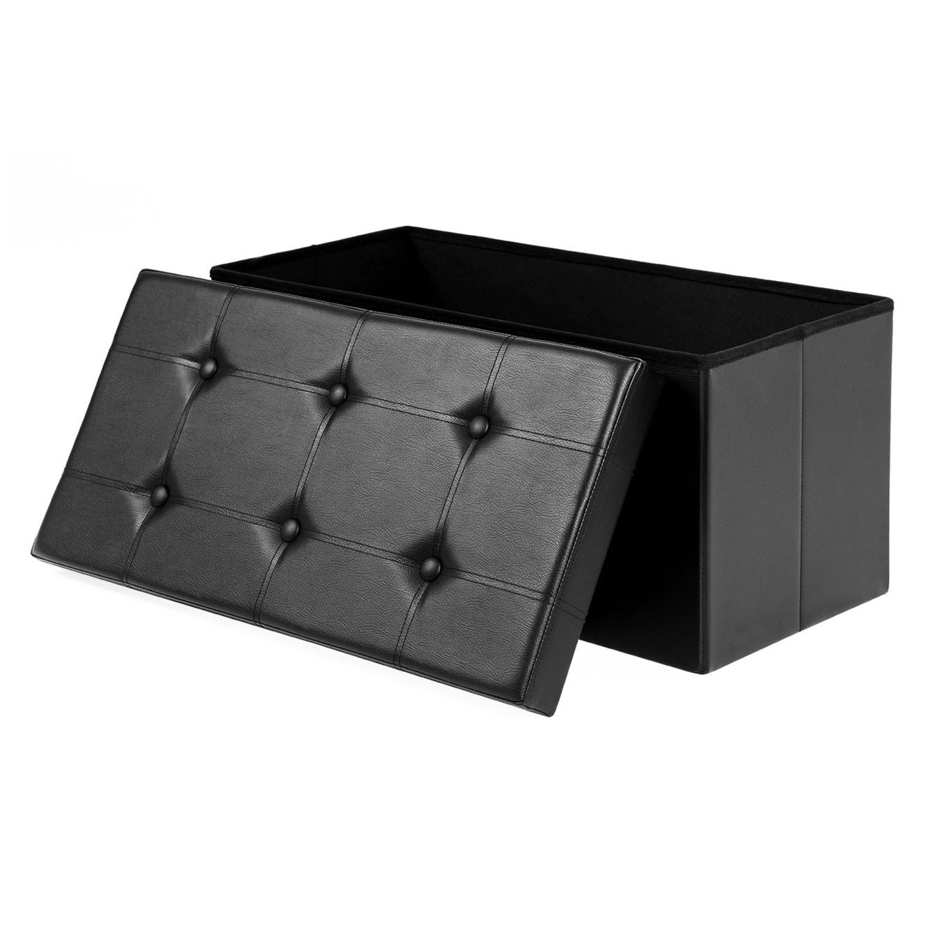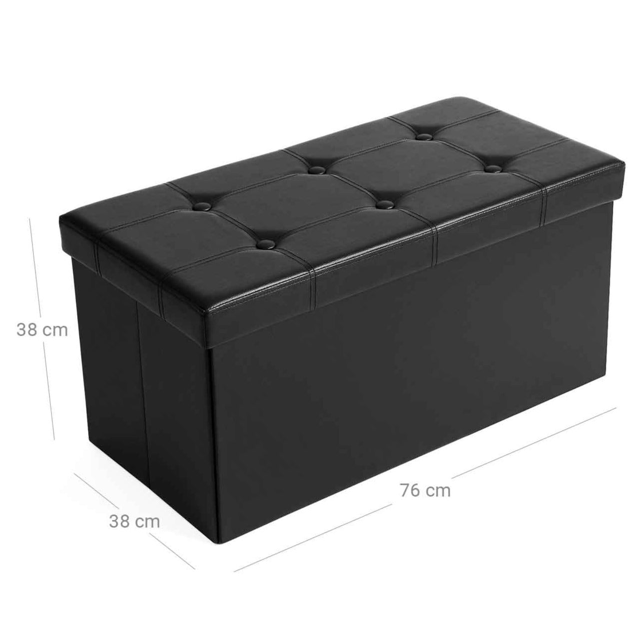Pouf coffre de rangement gain de place boîte tabouret pliable chargement max. de 300 kg noir 76 x 38 x 38 cm 12_0003101