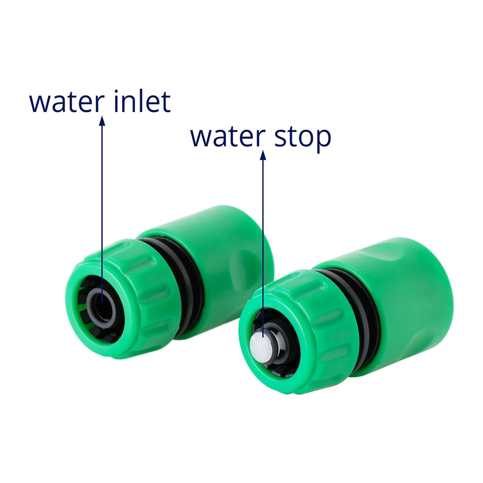 Il est livré avec deux connecteurs dont vous pouvez vous servir pour l’ajuster parfaitement à vos massifs de fleurs et à votre potager.