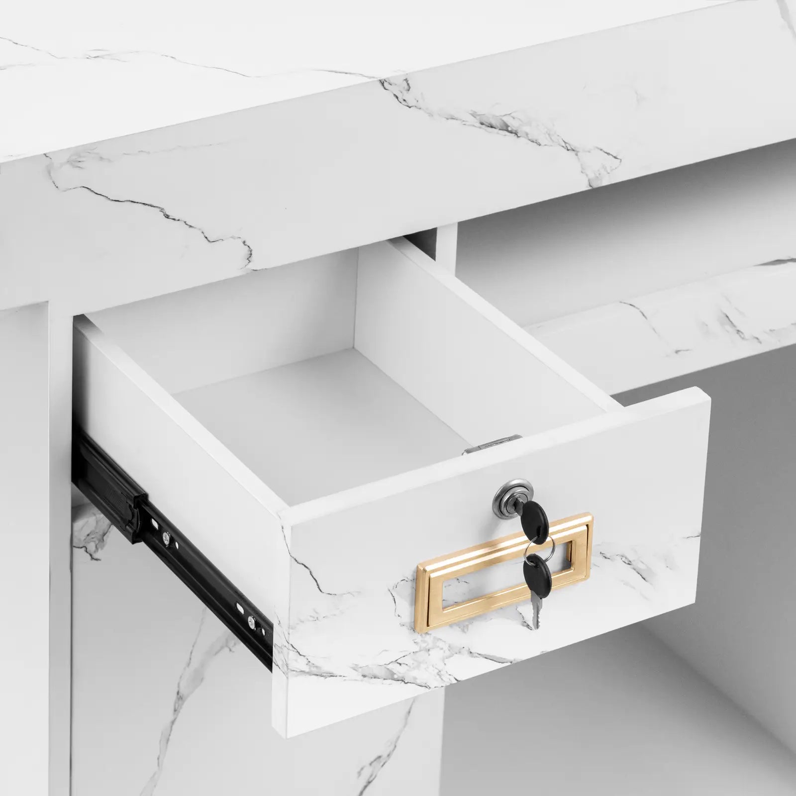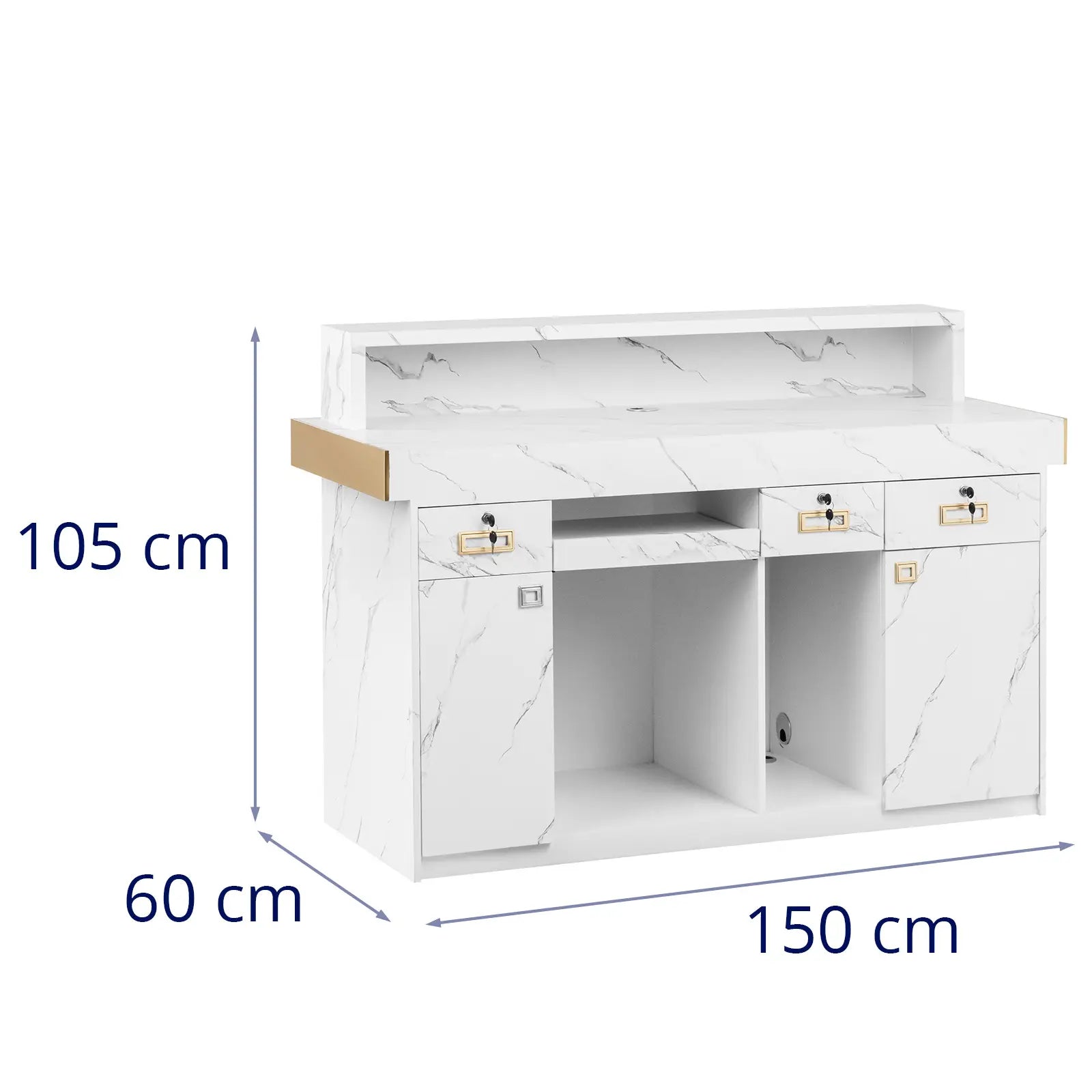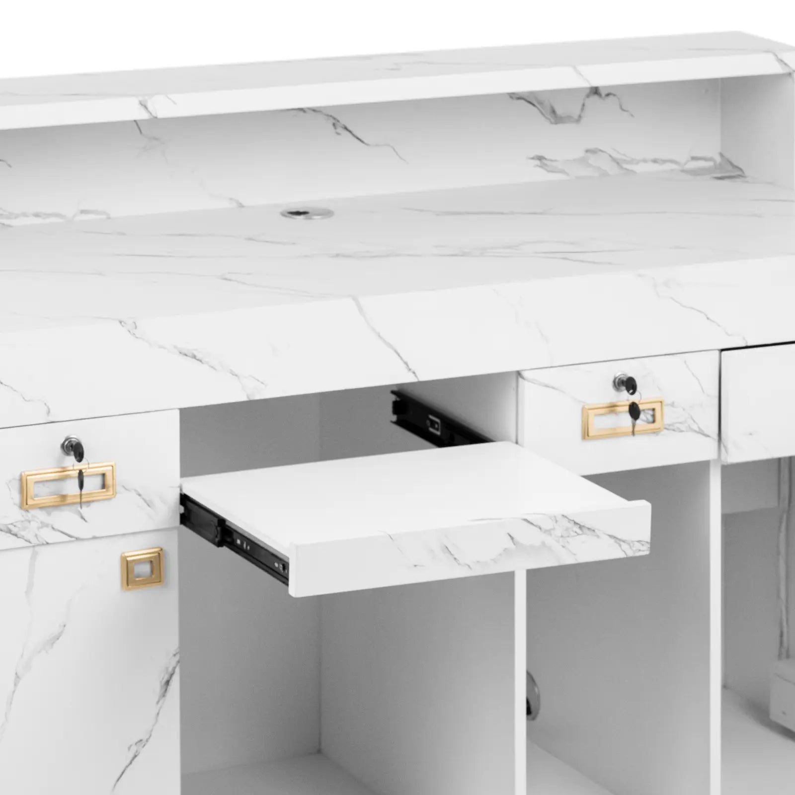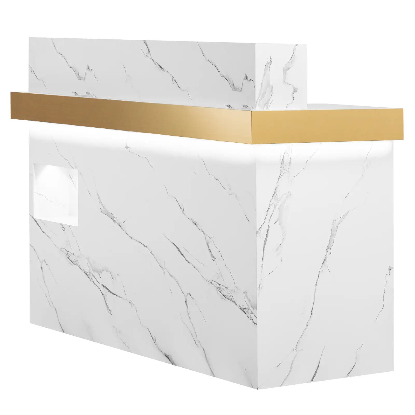 Banque d'accueil avec éclairage indirect verrouillable tablette coulissante pour clavier aspect marbre acier inoxydable mdf jaune doré marbre blanc 14_0008400